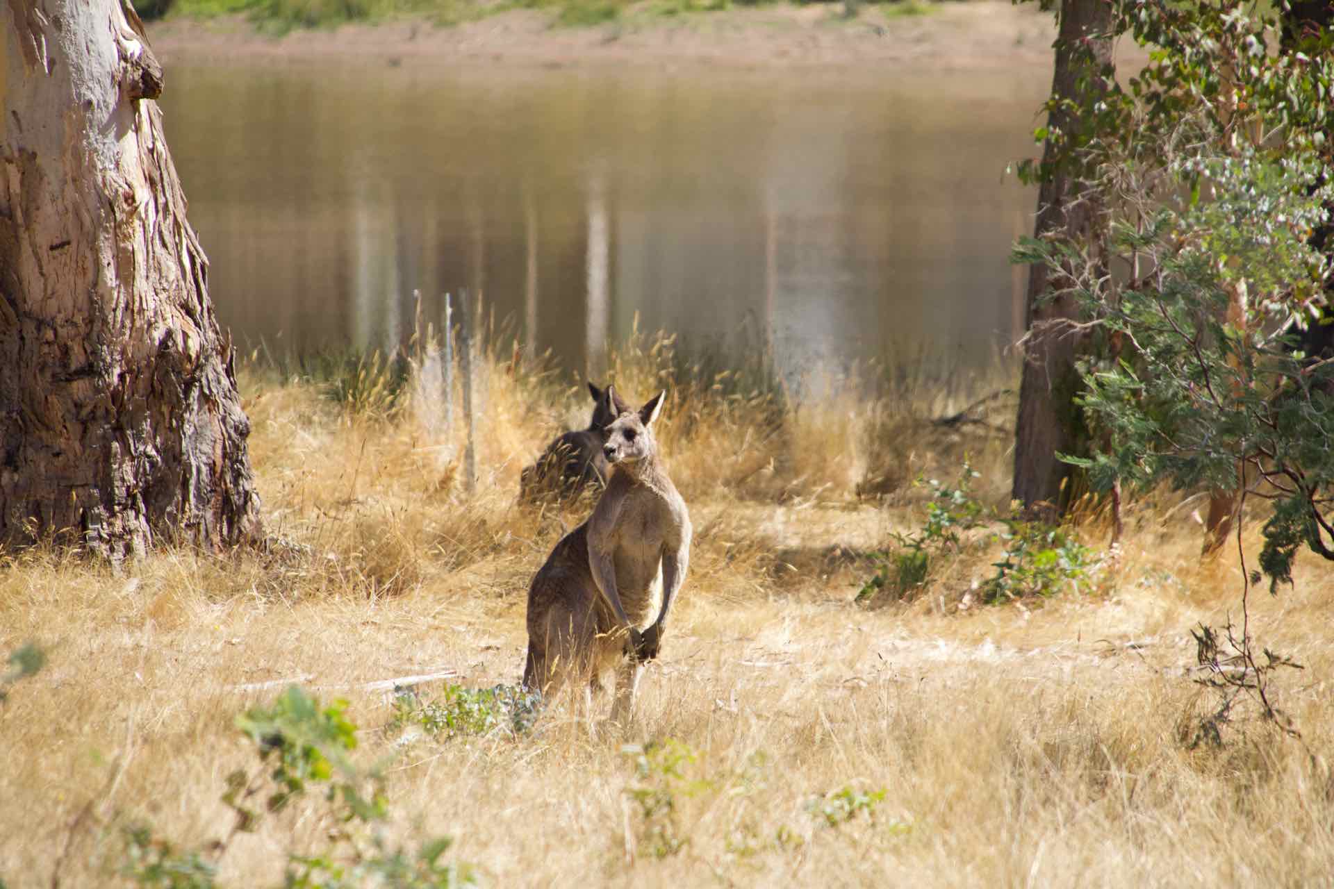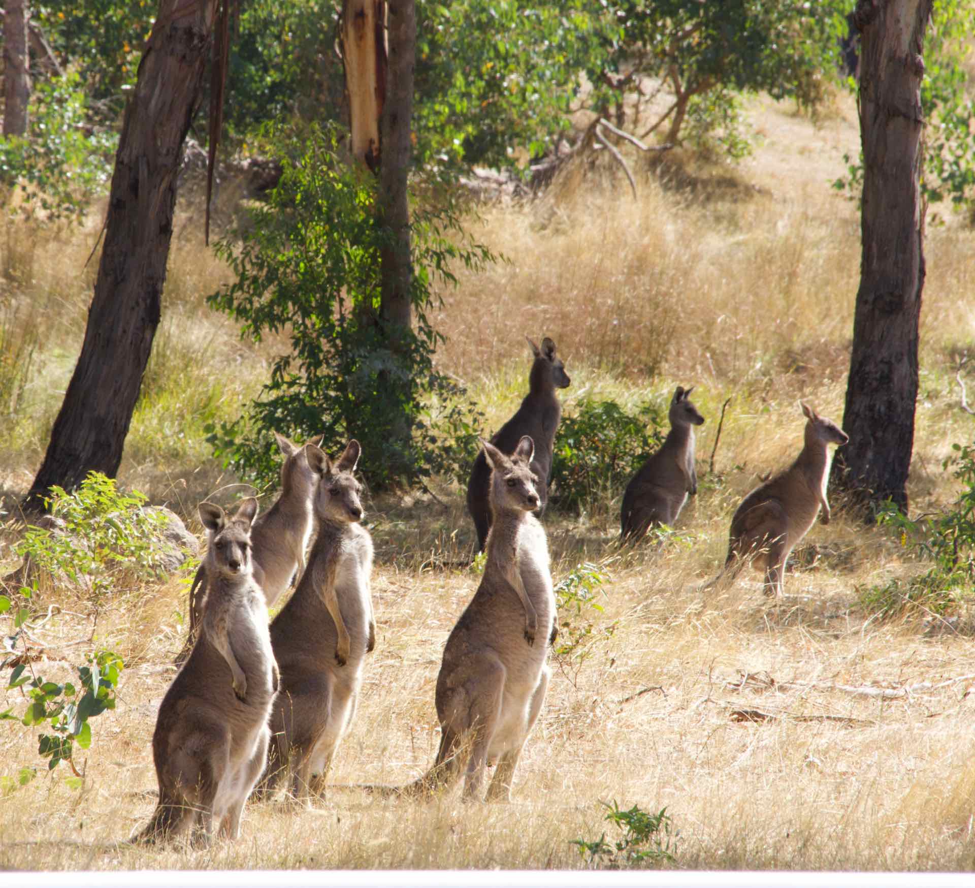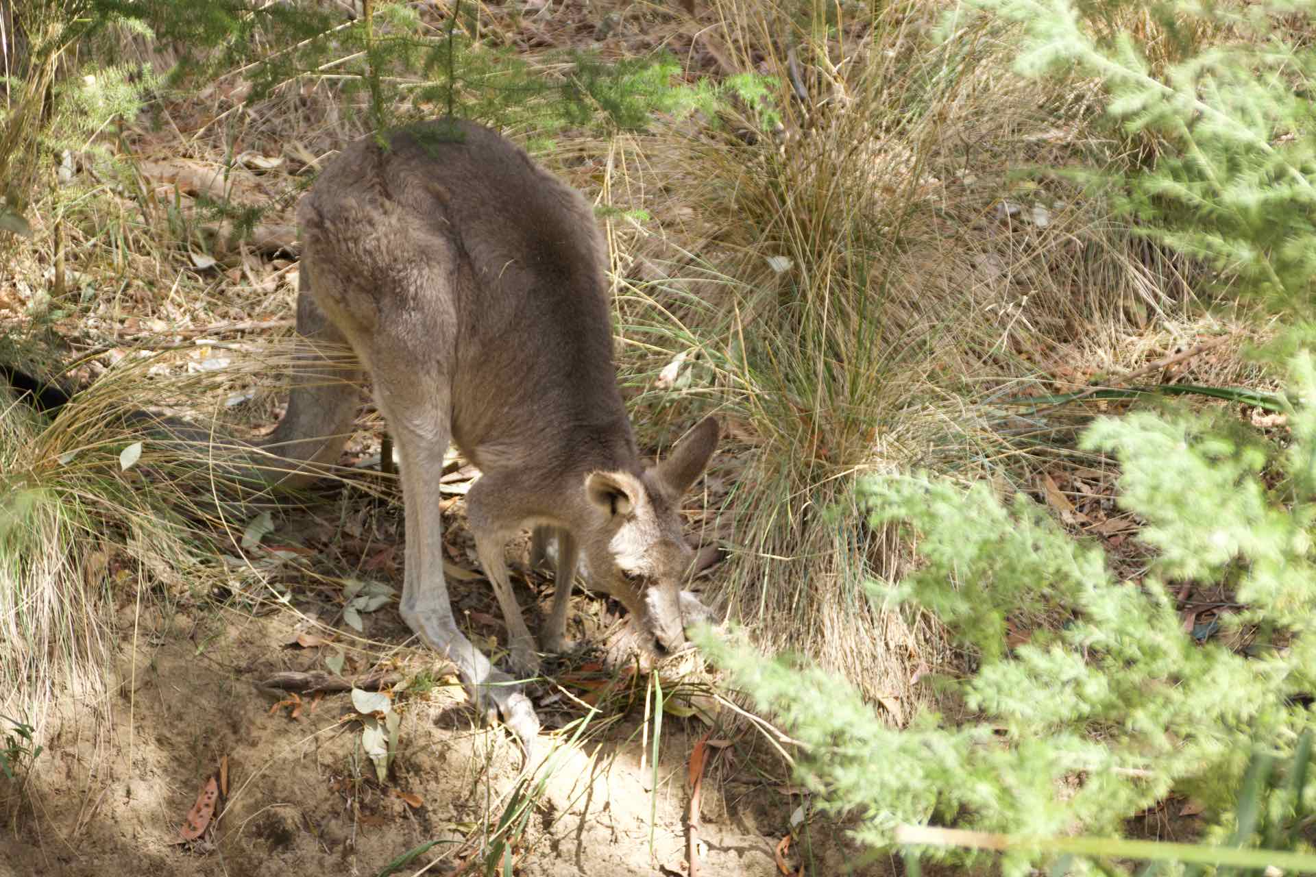 This trail was much quieter and we had it to ourselves. As we walked I glanced over into a wooded area to see a herd of around fifty Kangaroos all stood rock still staring at us. They looked a bit like Meerkats the way they held themselves, but as we stopped and stared back they decided that we were no threat and relaxed a little. These were much further away but showed more natural behaviour. I suspect our solo encounter earlier had either been ejected from the herd, or had been tamed in some way, leading to his rejection by the others. This thought was amplified when on returning to the car we saw our little one being petted and stroked by a group of American tourists. Hmmmmm.