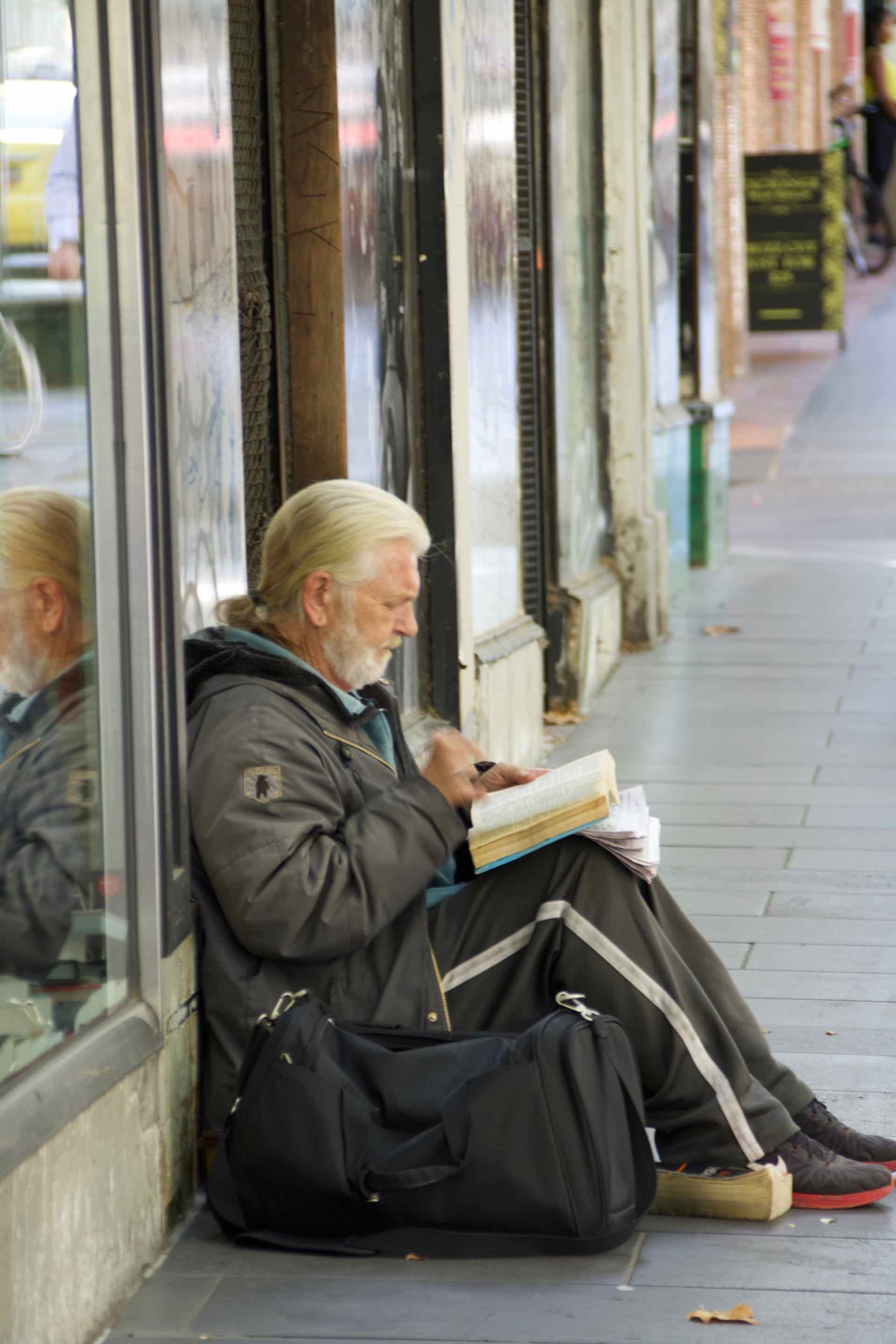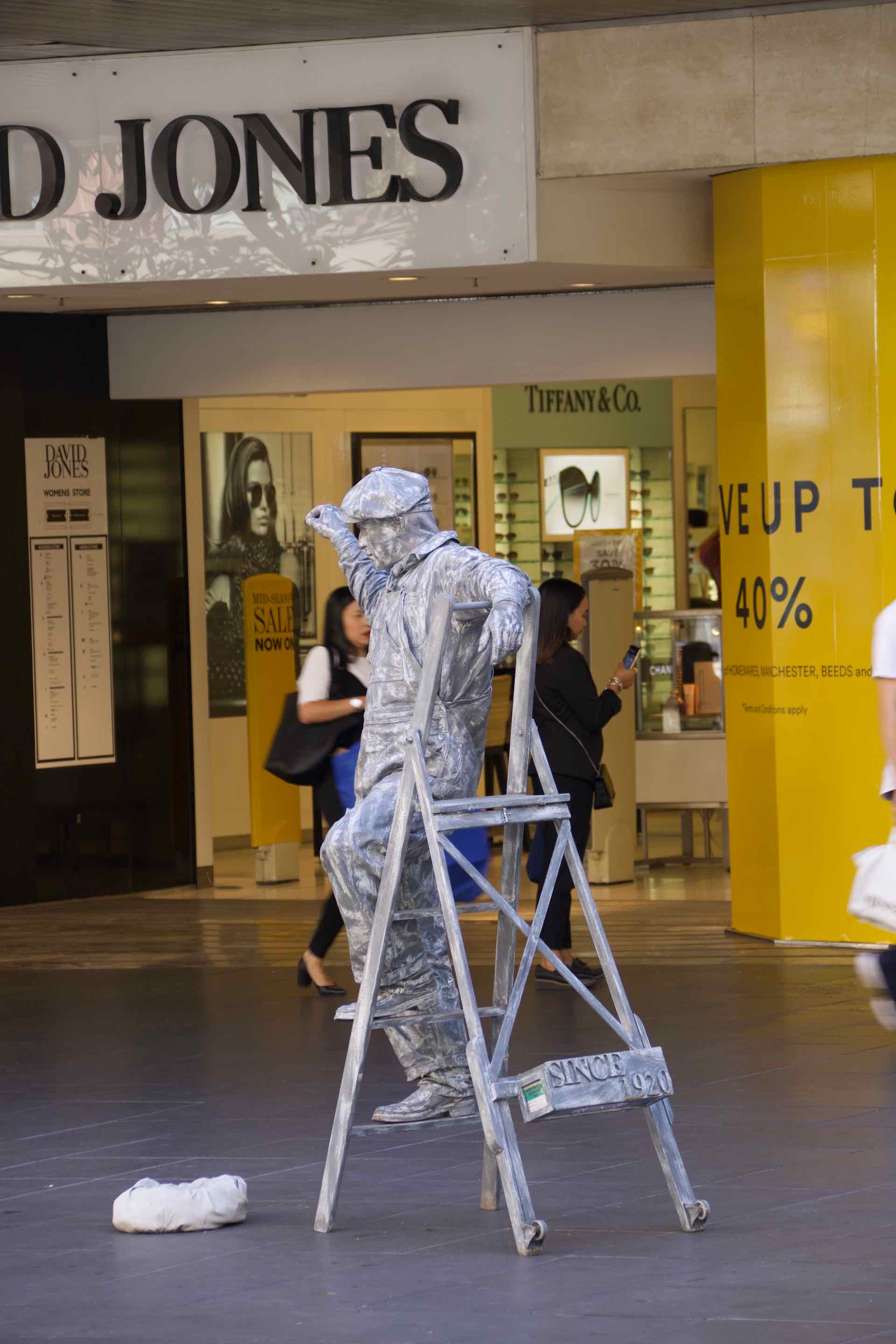 Top: Buskers: Bottom Left: Living Statue; Bottom Right: Some things don’t change: Man begging outside a bookshop
