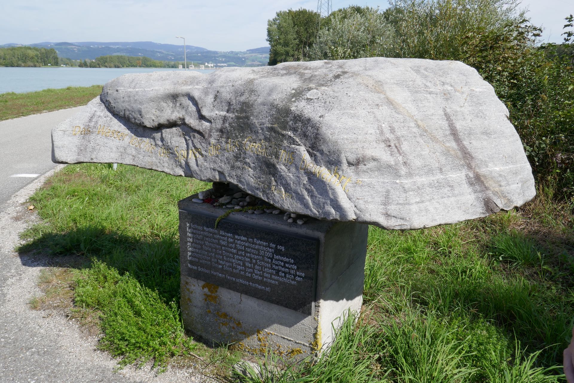 Close to one of these huge barriers, we came across a large memorial stone on a plinth. The plaque, written in German, stated that it was a memorial to over 30,000 handicapped and disabled children who were taken by the Nazi regime between 1940 and 1944 and murdered because of their disability. It was a simple and sombre reminder of past events and the cruelty of mankind.