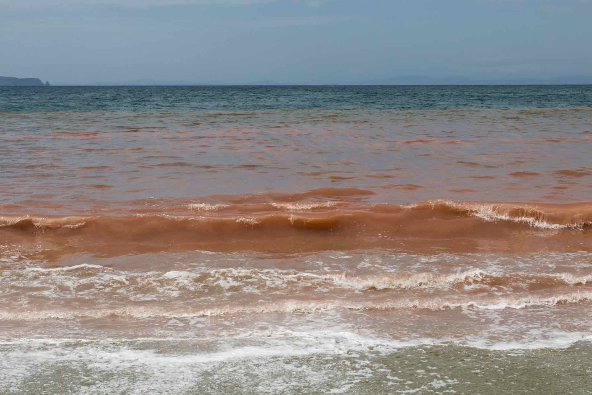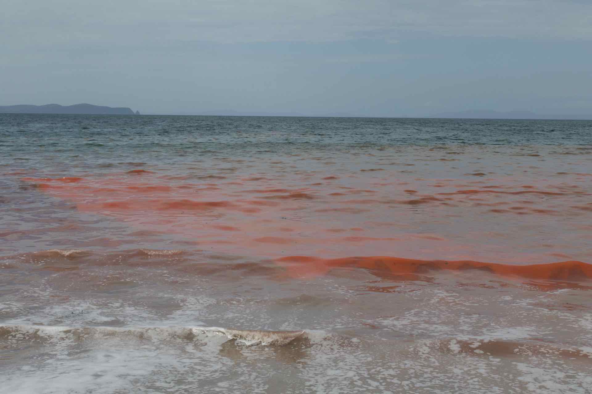 Eventually we had begun to realise that we were running short of time in order to make our return ferry crossing. Our walk to Grass Point was cut short and we returned along the same path. Walking along the sand around Adventure Bay I noticed a wide area of the sea close to the shoreline had turned a deep red colour. Worryingly this was an algal bloom called Noctiluca scintillans, and although research suggested it was non toxic, I am not sure I would eat any fish contaminated with this stuff. We were told that it is present in the harbour at Hobart, is invisible during the day, but glows a luminescent blue in the evening if disturbed. Why does it occur? Scientists are not sure, but one theory is sharp differences in sea water temperatures at different levels. Global Warming anyone?