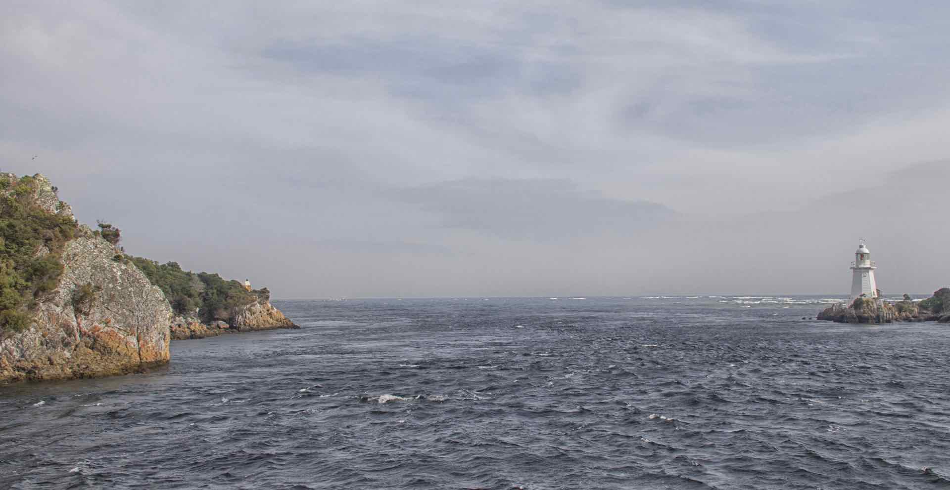 We departed and headed for the aforementioned Macquarie Heads and Hells Gates, so named by the prisoners being brought to the penal colony at Sarah Island, sailing through the narrow channel between the rocks, out of the Roaring Forties and Southern Ocean and all they can see is their destination in the distance it must have been hell for them. We sailed out through the “gates” for about half a mile, just to get a taste of the ocean with the waves and the wind, before turning back in to the shelter of the harbour. We went from calm sea to pitching and rolling in 25kt winds in the space of about three minutes and it made standing on the bow viewing area a very challenging experience.