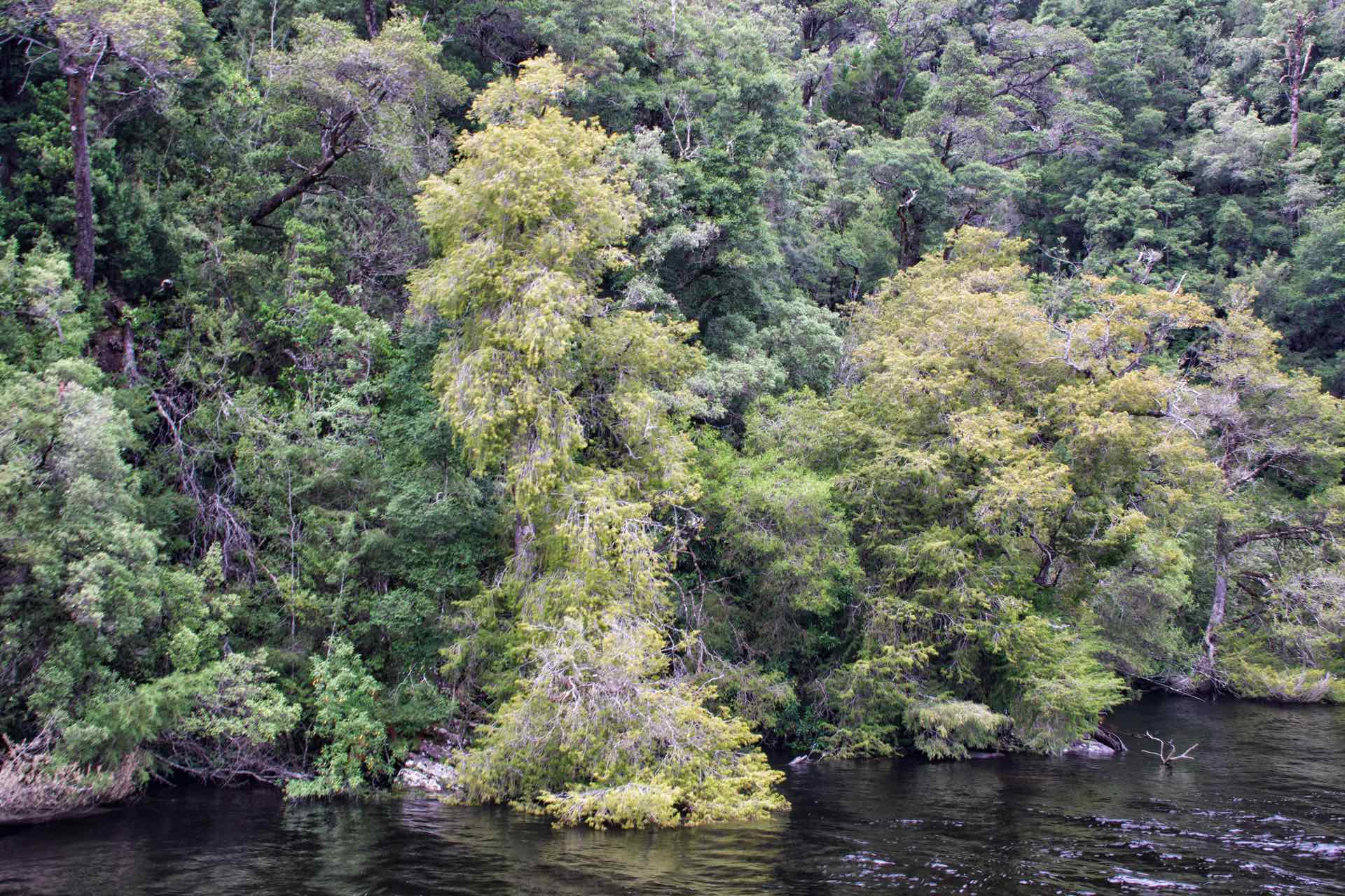 Clockwise from top left: The mouth of the Gordon River; Peace and tranquility on the river; The light foliage of the Huon Pine; The river narrows.