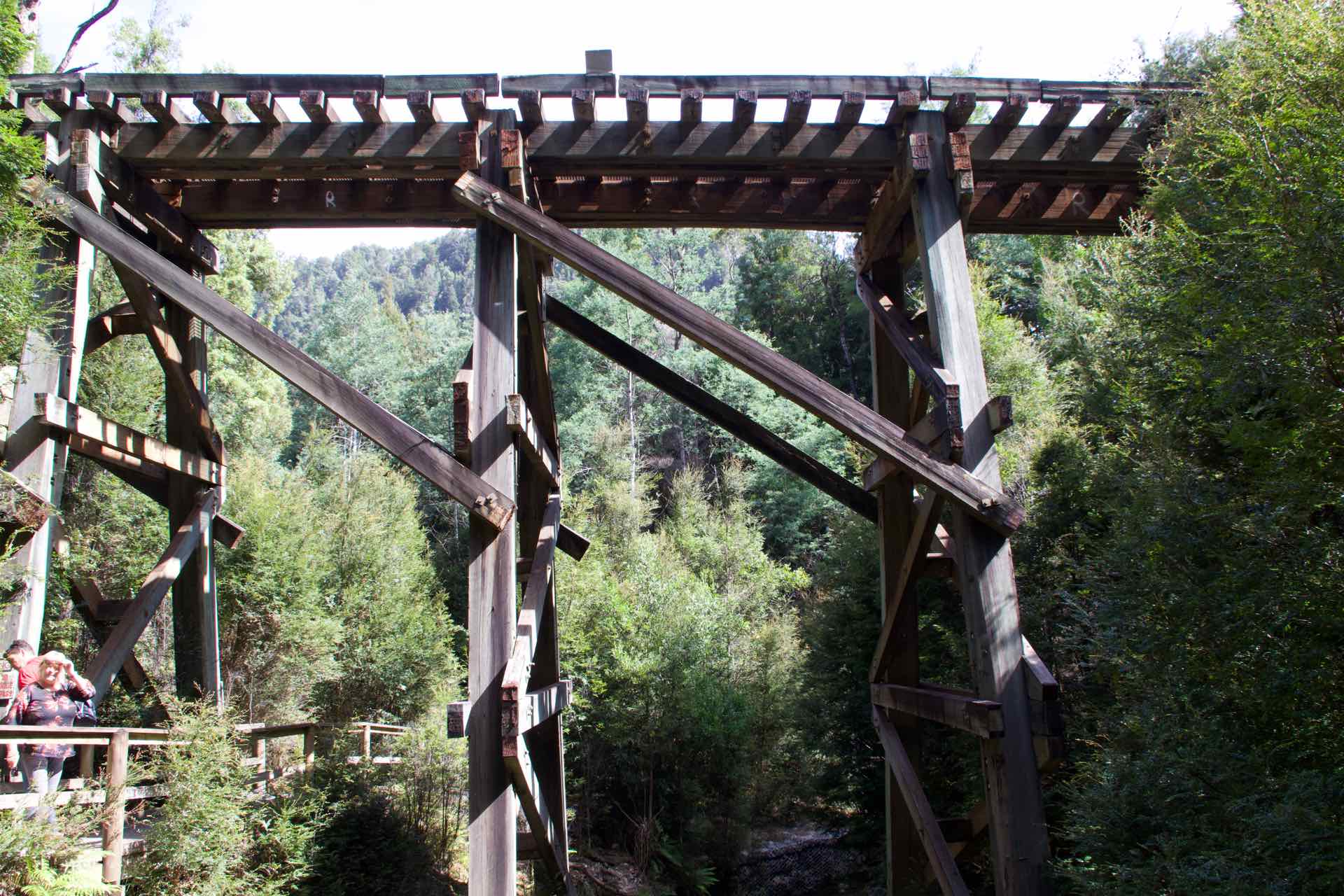 Building the original line in the 1890’s was a challenge in itself. The surveyors, hired by the mine owner to plan and build the line initially said finding a route through the rain forest was impossible, so he fired them, and hired more who said it could be done. The owner then hired 400 men to clear the route and lay the track. They could not use dynamite to blast through the rock because the ground was too soft, so they were forced to hand dig. They were digging through rain forest, so the men dug, and dug, and dug their way from Queenstown. It still only took four years to lay the line which was a remarkable achievement. Trains were imported from Glasgow and arrived in kit form with no instructions on how to build them. Flat pack trains long before the idea had been invented! Also one metal bridge was brought from the UK and that had to be put into place without the aid of cranes, another civil engineering feat.