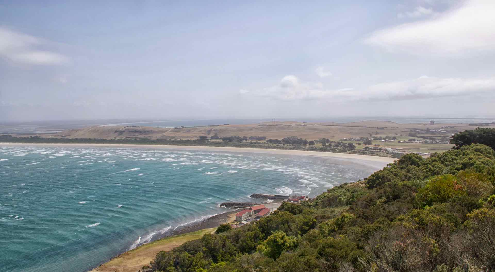 Lastly on our mini half day road trip we arrived in Stanley. Whilst Wynyard had a lighthouse, Stanley has its Nut. The Nut or to give its correct name, Circular Head, is an extinct Volcano that rises up from the flat lands around. Stanley is little more than a collection of cottages and shops nestling half way up one side of the Nut, with an active fishing harbour in the lee at its base. Because of its exposed location, open to the Roaring Forties, it seemed perpetually windy but with the bright sun, it felt a glorious place to be. A chairlift carries folk to the top, but there is a long and steep walk up, then the 45 minute walk around the edge. We took the chairlift. The views were stunning all around, it is just a shame that, despite the wind and the bright sunny day, a low lying haze was restricting visibility.