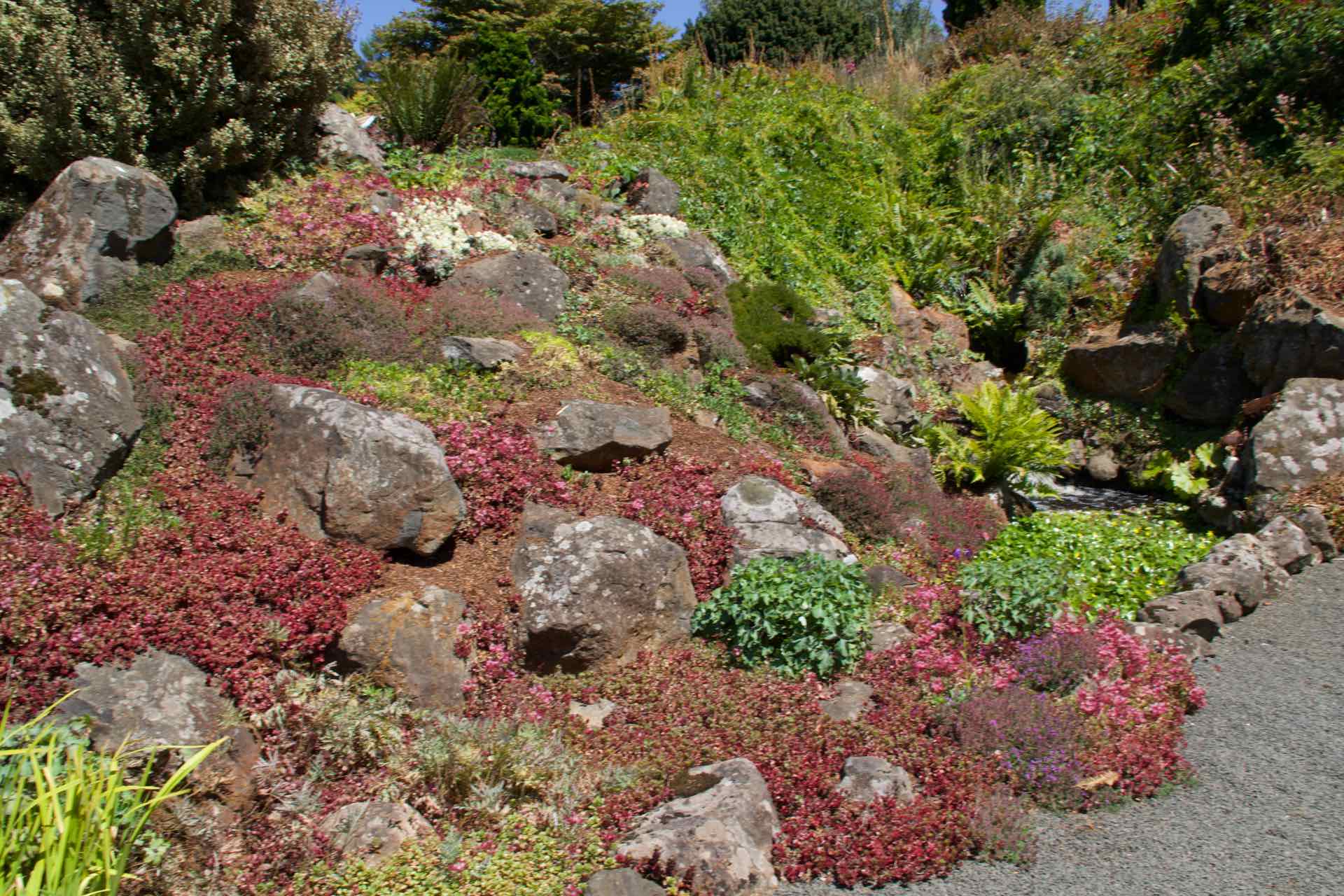 Having done coastlines, for our next trip we headed inland. Our ultimate destination was the Leven Canyon but it had been suggested to us that we try out the cafe at Wilmot for coffee and cake, then take in the open garden in the wilderness about 20 mins from there. With this in mind we headed off, driving into Wilmot about an hour later. The place was very small and deserted, not a cafe in sight. A quick call into the village museum revealed that, yes there was a cafe, but it had no seats and was the general store selling take away coffee only. Hmmm okay, not for us, but we knew that the gardens had a cafe so off we headed.