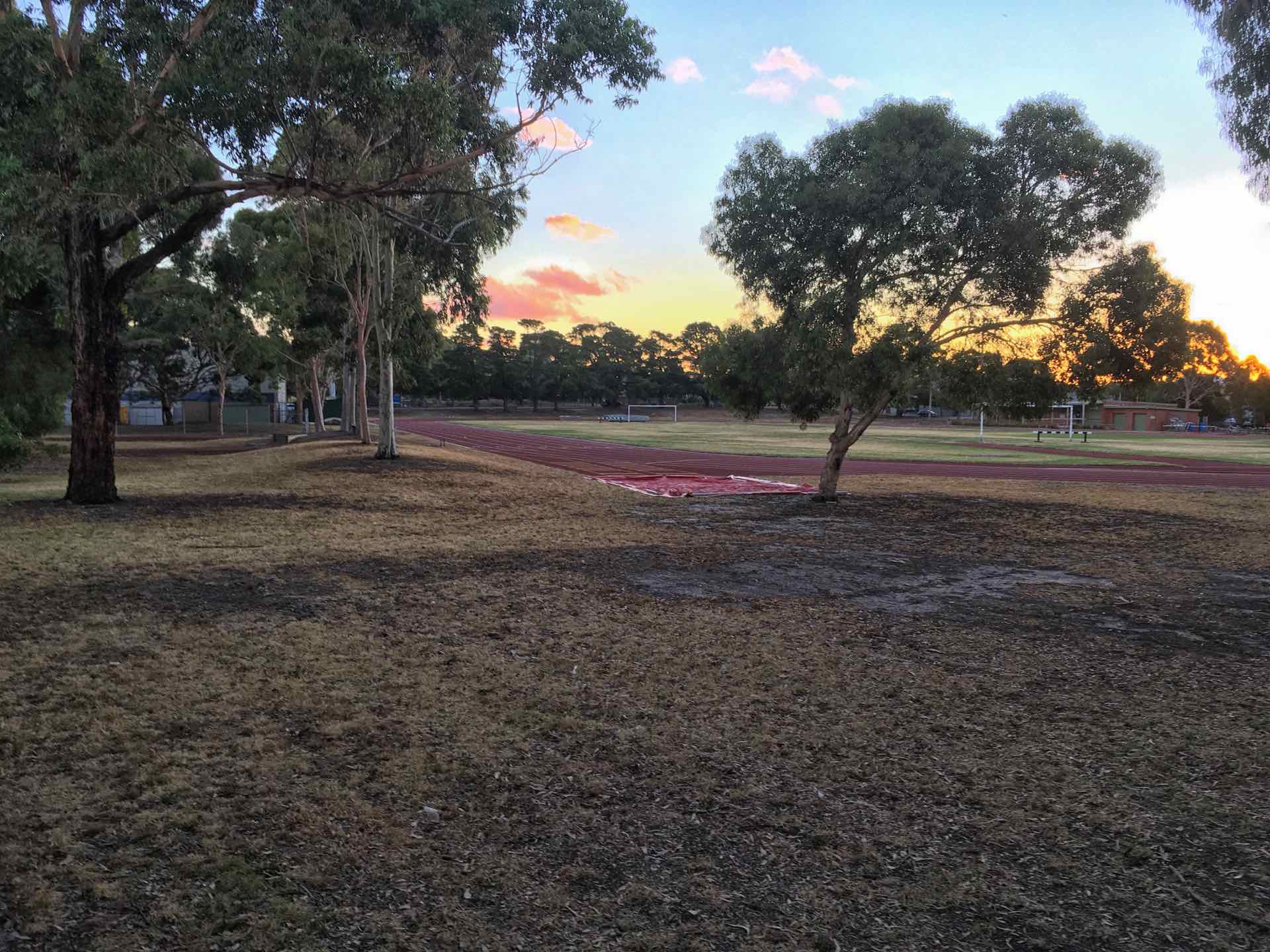 L – Over the garden fence – Sandringham Athletics Track. R- Me testing the track (be rude not to!)