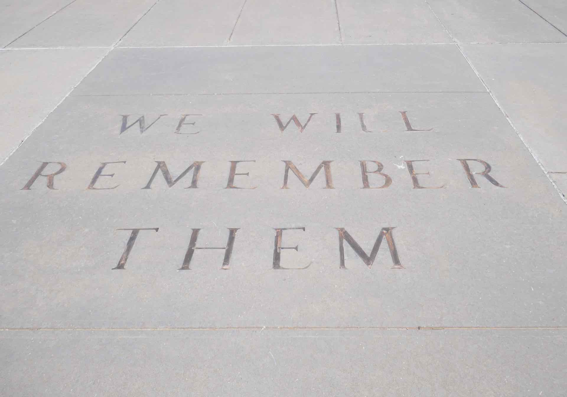 Top Left: View from the Shrine down Central Boulevard; Top Right: A simple yet poignant message; Bottom Left: Inscription on one side of the shrine of remembrance