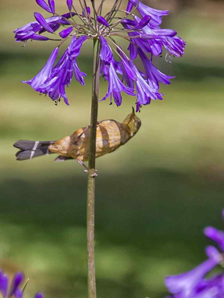 Not sure what this bird was but he/she was certainly enjoying time on the Agapanthus