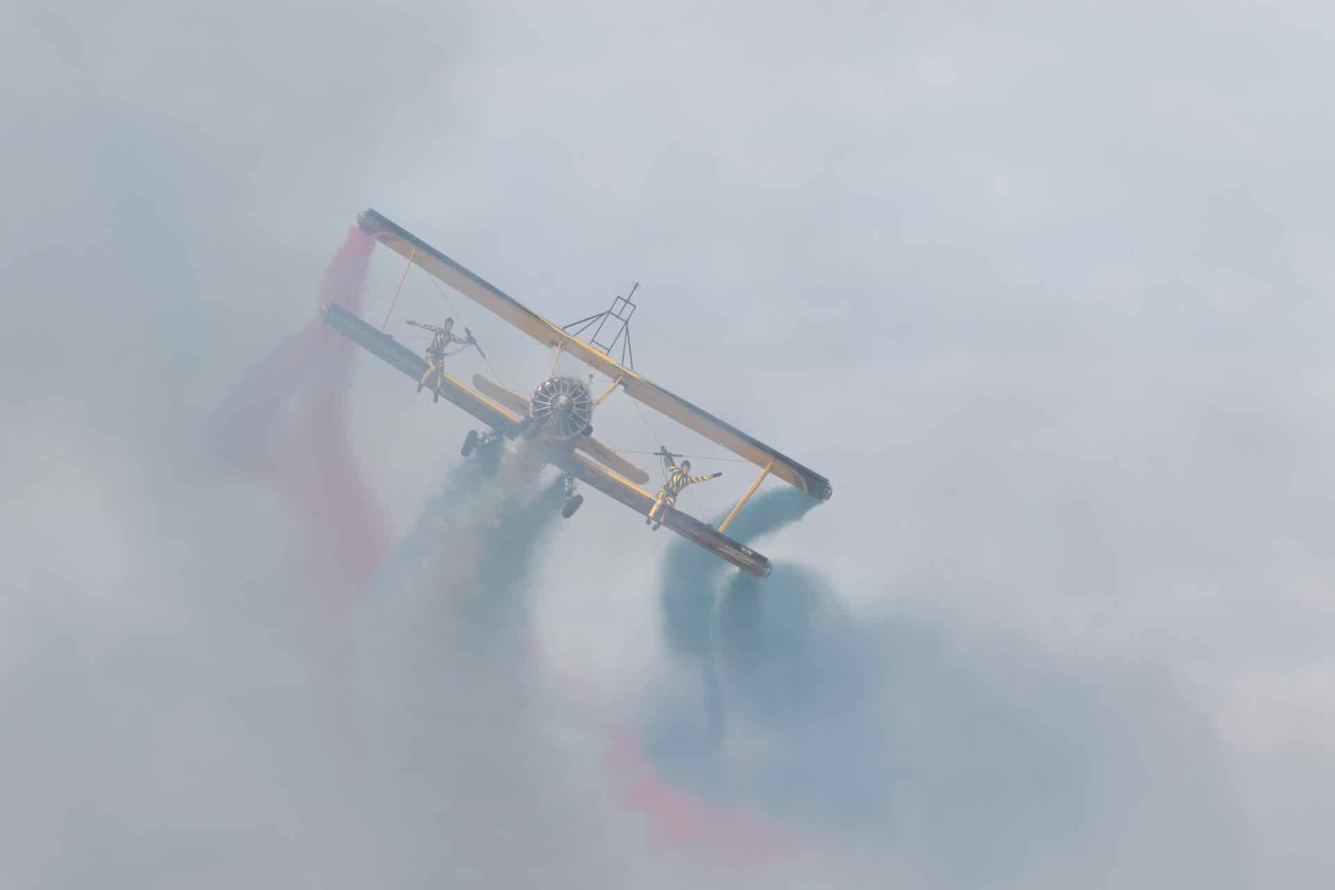 Clockwise from top left: Grumman Ag Cat plus Wing Walkers; The Ag Cat Displays; Oscar and his Dad enjoy the show; RAAF Pilatus PC9 “The Roulettes”
