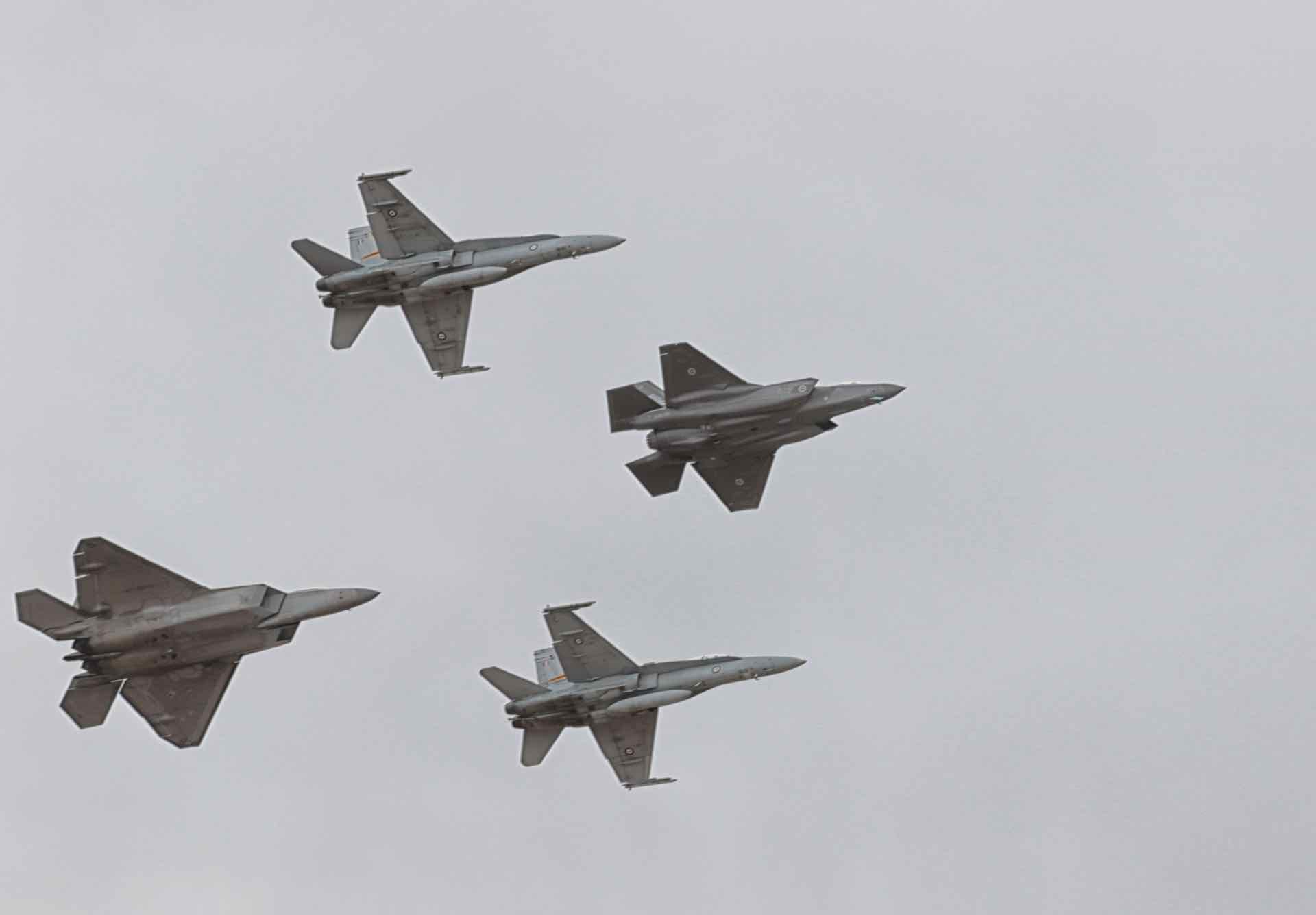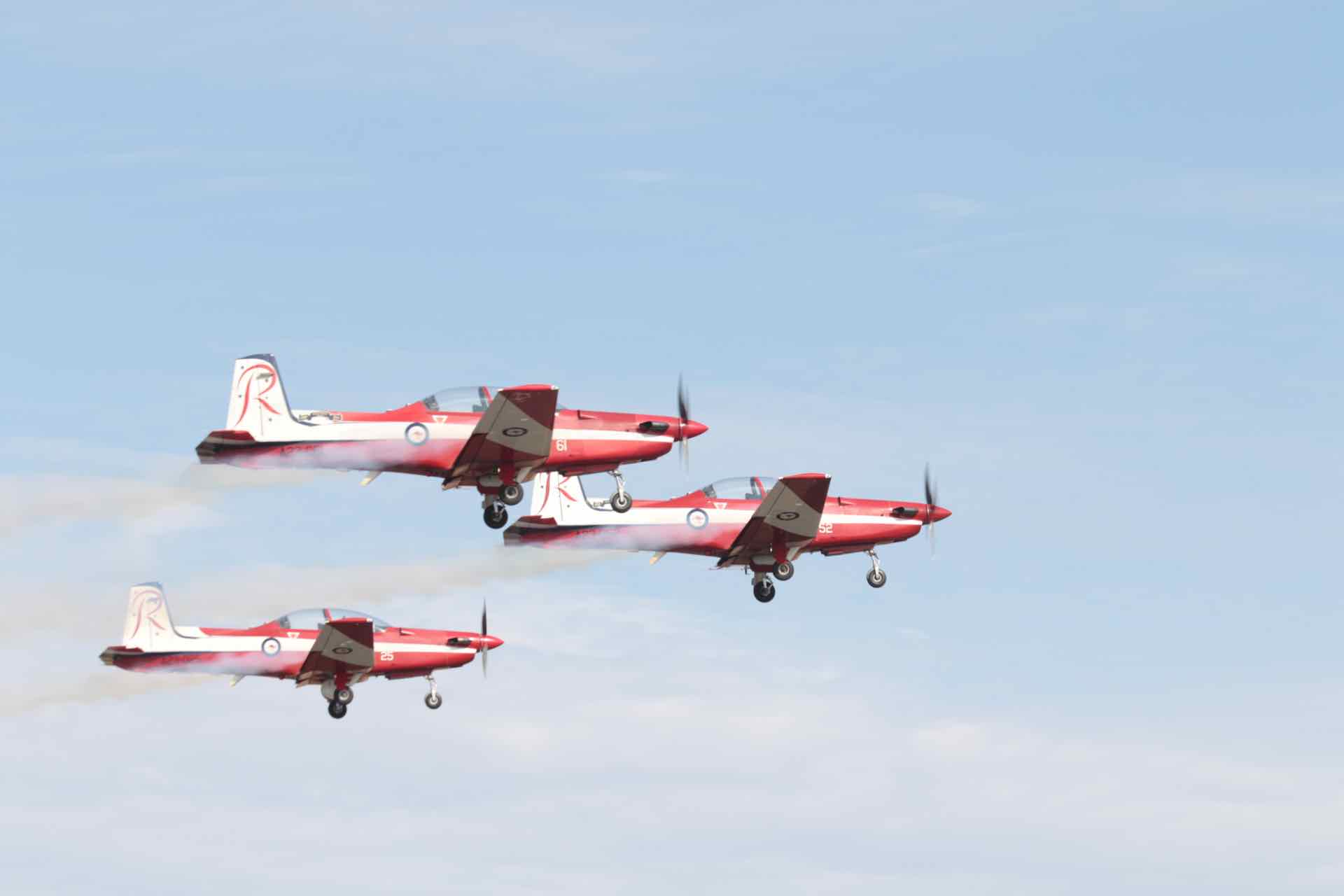 Clockwise from top left: Lockheed Martin F22 Raptor; Pilatus PC-21 Trainer; Pilatus PC-9 Roulettes; RNZAF C130