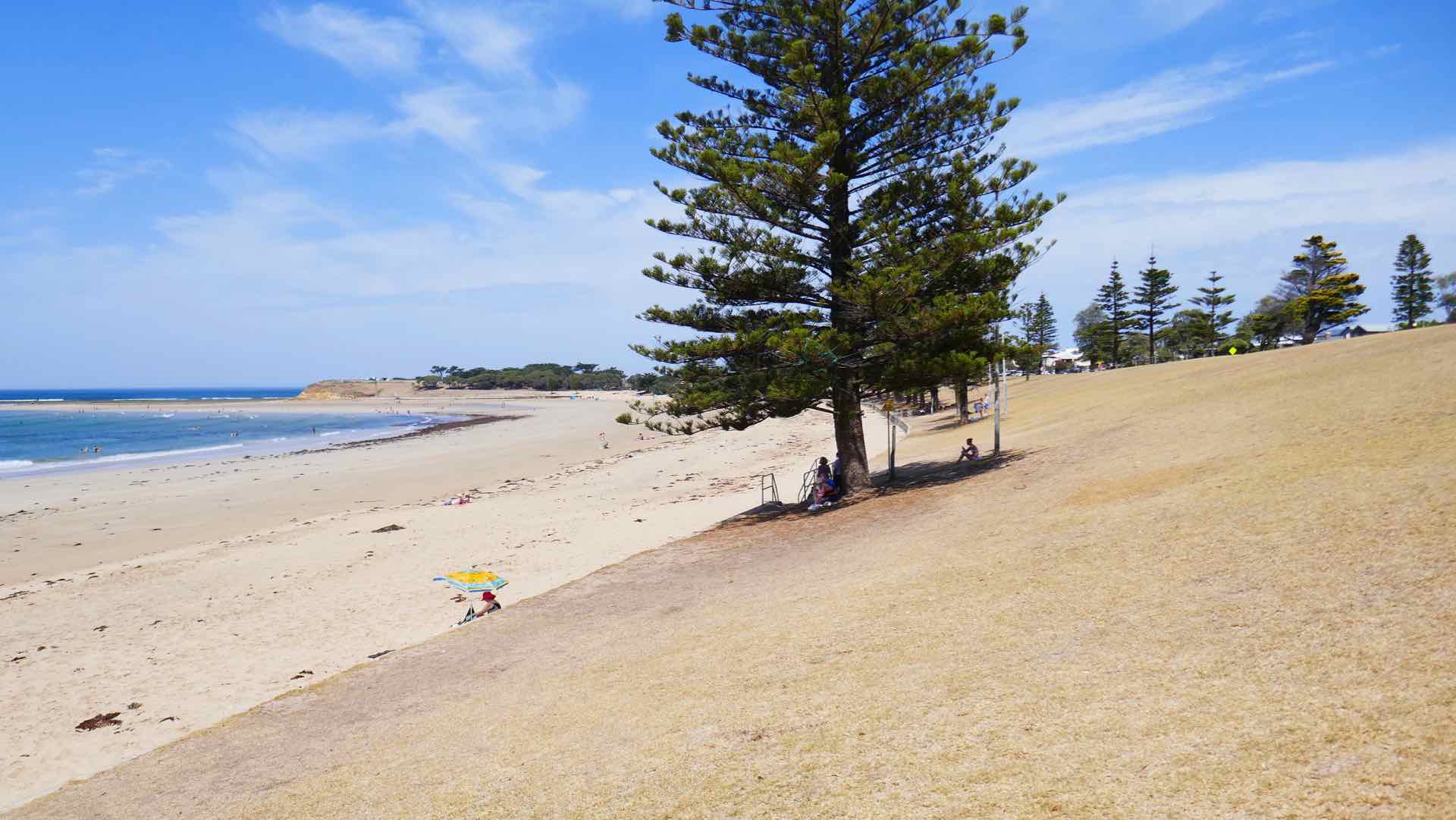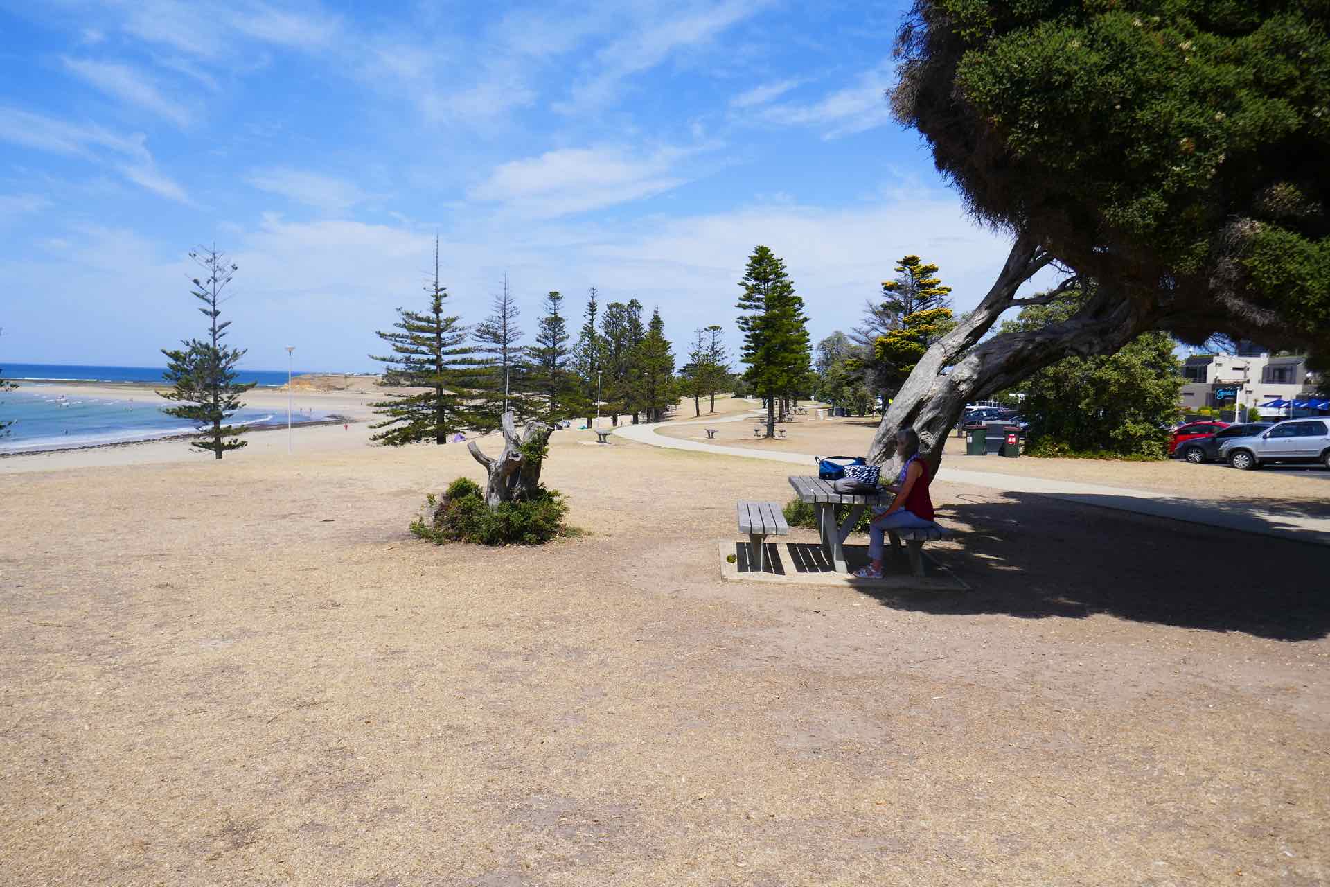 We headed back to a picnic table on the esplanade for lunch trying to stay out of the hot sun as much as possible. The intense heat of the summer had turned the grass a dusty parched pale brown colour and despite the clear skies, there were few people on the beach, most preferring to sit in the shade provided by the mature trees close by. We stayed a short while before the heat got the better of us and we headed back to the car and home. Incidentally the indicated temperature as we set of was 41C so definitely a heatwave!