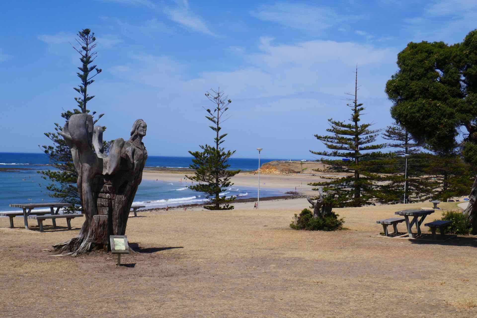 At the time of this visit Victoria was enduring a late summer heatwave with temperatures approaching 40C. We headed off to Torquay on one of the hottest days. We stopped at the Salty Dog Cafe on the sea front. It was a lovely, dog friendly cafe so we were able to make friends with a few of our four legged friends and their owners. From here we wandered into town for a look round. What a disappointment. We were led to believe it would be old world and quaint. That had disappeared, to be replaced by a large supermarket and other glossy shops. There was the odd gem by the way of an art gallery but all in all, a waste of time!