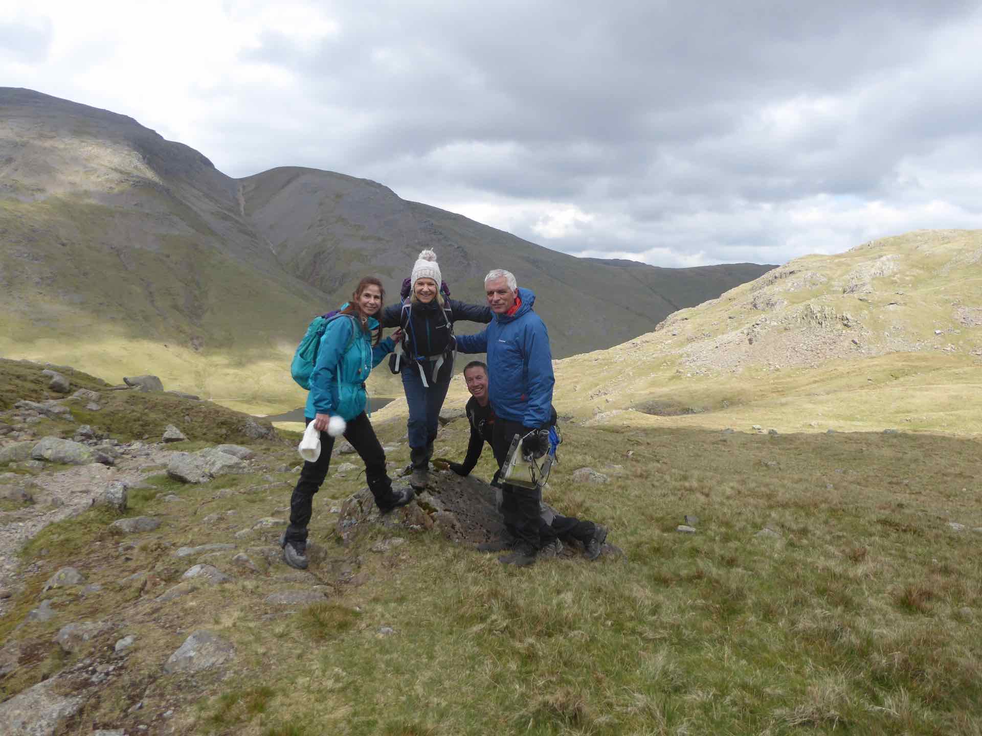 And finally:  Top: Jo and DH just before Styhead Tarn; Bottom: The four of us with the Great and Green Gable in the background.