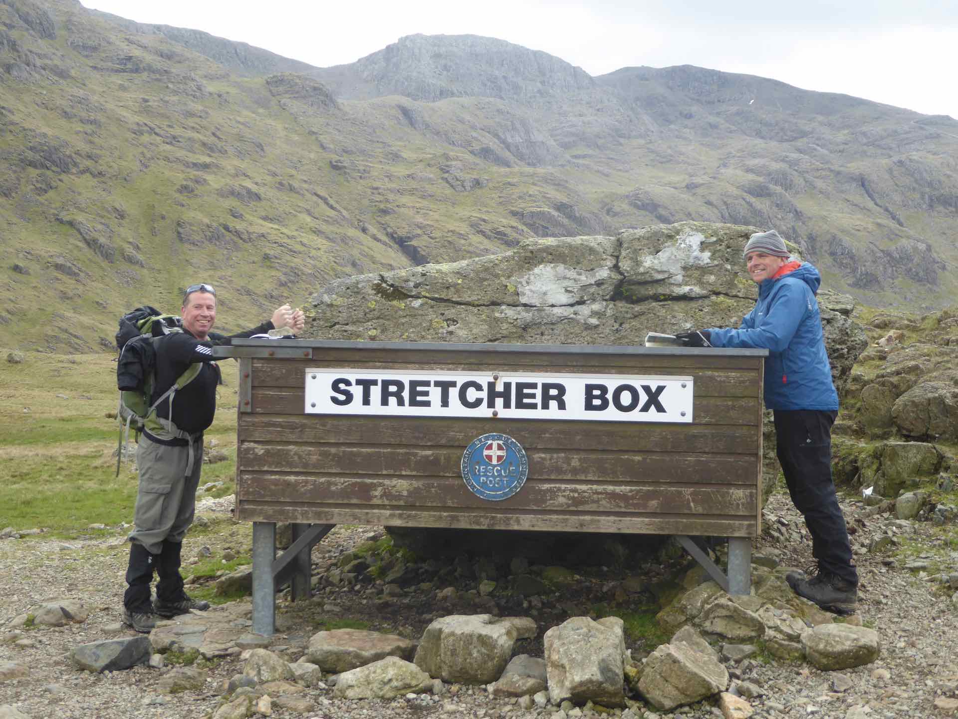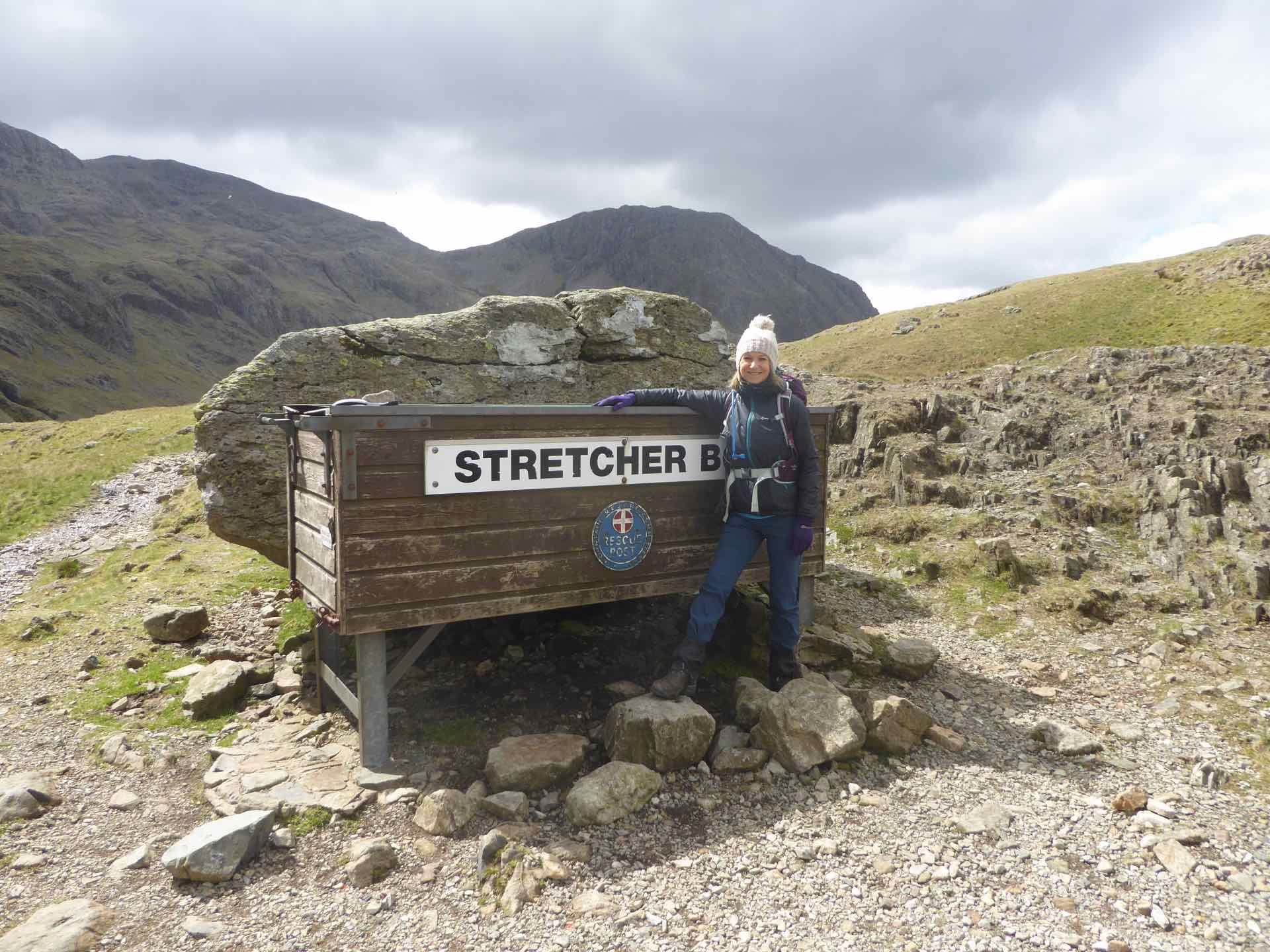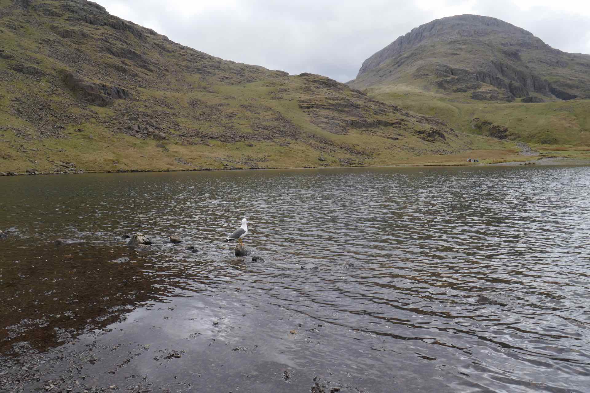 Just beyond Styhead Tarn, was a Stretcher Box, full of equipment placed there for use by the Mountain Rescue teams, and where several paths converge. Several small groups of walkers had gathered, using the landmark as a rest and re-grouping point, some following the route to Scafell Pike, others descending Great Gable, and many, like us enjoying a less strenuous walk in the fells.  We lingered a while watching groups come and go before heading off ourselves to our next point, Sprinkling Tarn.