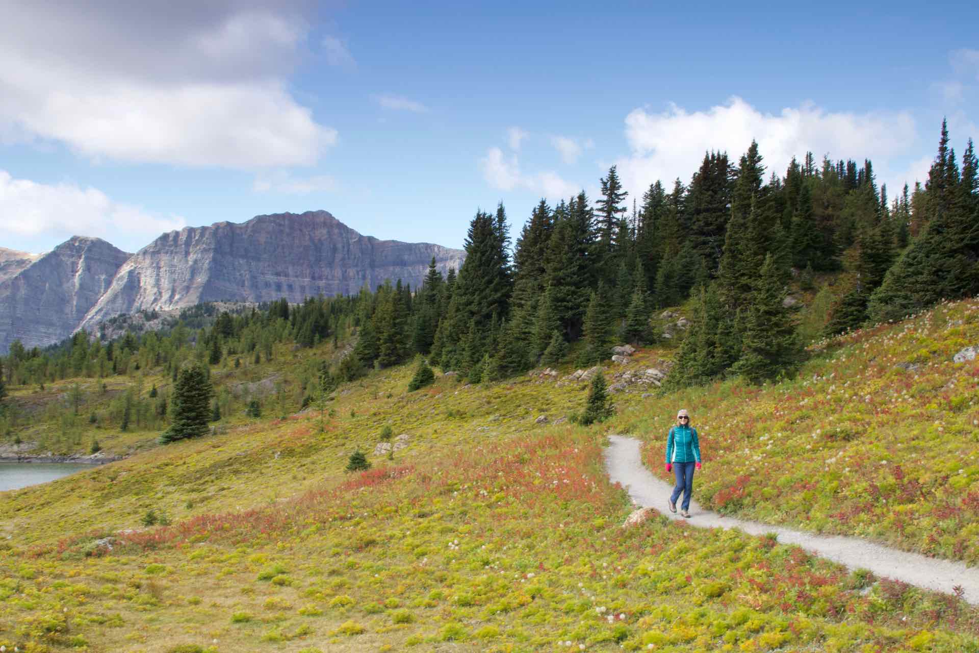 Clockwise from top left: Log dam built by a beaver colony; Beaver den; Cascade Mountain overlooking Banff; The Trail; Views from the trail