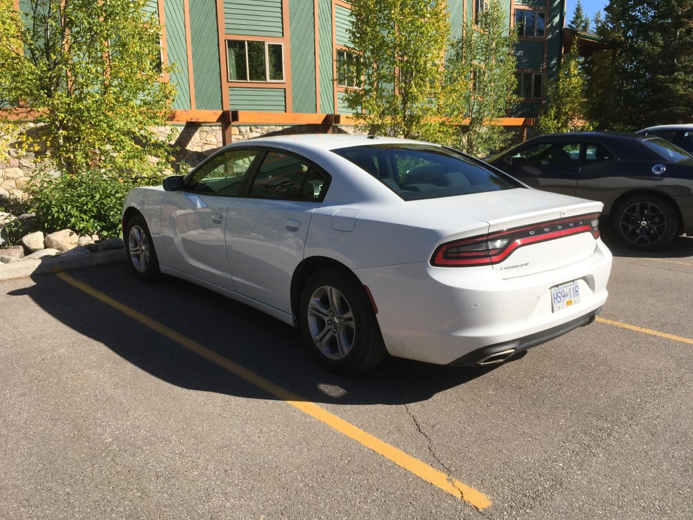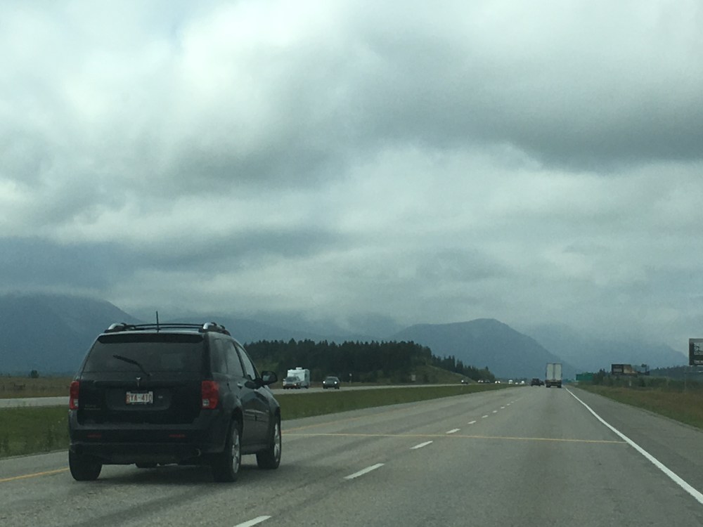 Our stay in Calgary was short, just one night, and after a long sleep we awoke to a dreary, foggy, cold morning and after a breakfast in our hotel we headed back to the airport to pick up the hire car. We had booked a “Full Size” Saloon, and not fully understanding  what that meant, had a shock when we were presented with a Dodge Charger Saloon; a derivative of that noted American “Muscle Car”.  The man in the car hire place said “……….. it is a lovely, comfortable car and has plenty of power”, not much use in a country where the upper speed limit is 100kph (62 mph). We noted that the roads were wide, as were the cars, and as we headed out on the highway, we tuned in to a Canadian rock music station.