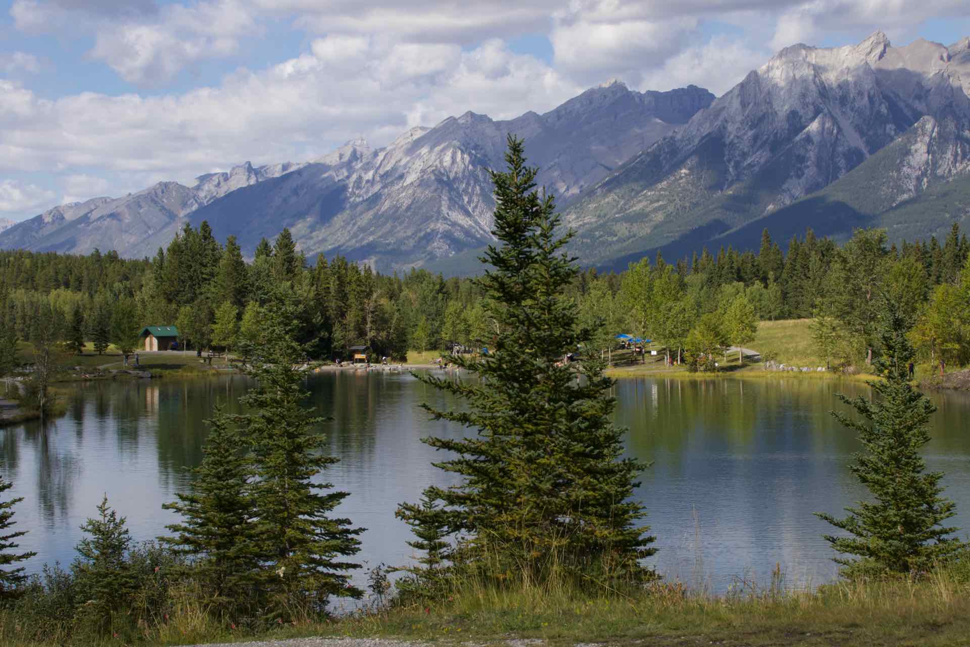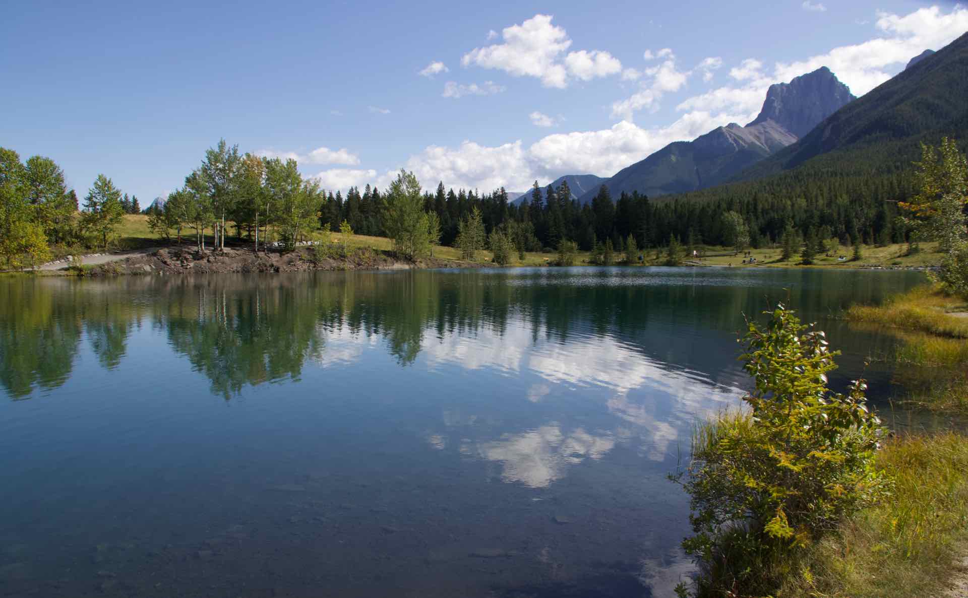 There are numerous walking trails in the local area.  One in particular originates in nearby Whitemans Pond, about 20 minutes drive from Canmore, with a trail up to Ha Ling Peak.  Heading along Spray Lakes road the route started to climb and narrow.  We passed a large car park on the right and wondered why people were pulling off the road and turning round.  About 50 metres further up the hill the tarmac road disappeared and became a rough gravel track. This was the “road” to Whitemans Pond.  As we were not insured for gravel tracks we joined those using the car park to about turn.  We ended up at Quarry Lake, close to the aforementioned Nordic Ski Centre and had a pleasant walk around the local area keeping a close watch for any wildlife, but the biggest beasts we saw were dragonflies darting around the lake. Later, closer examination of the tourist map revealed that the 742 Smith Dorian Hwy was actually a gravel track!