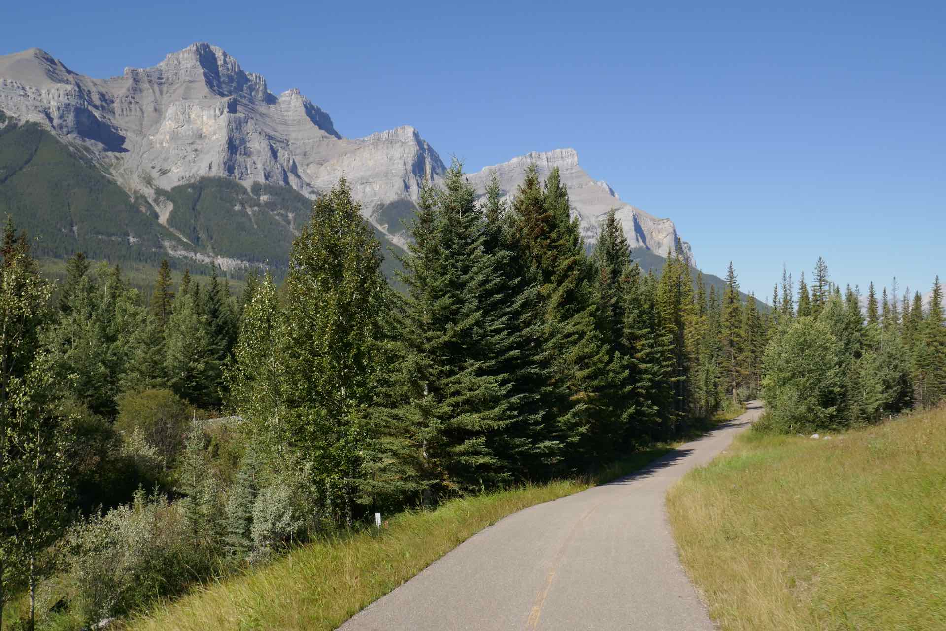 Canmore sits on the Trans-Canadian Highway 1 and in 2010, to celebrate 125 years of the Canadian National Parks Authority, a cycle trail was constructed from Canmore to Banff which runs alongside the main highway.  It is a 22km tarmac route which occasionally leaves the side of the highway to provide some stunning viewpoints of the Bow Valley and the mountains that line one side of it.