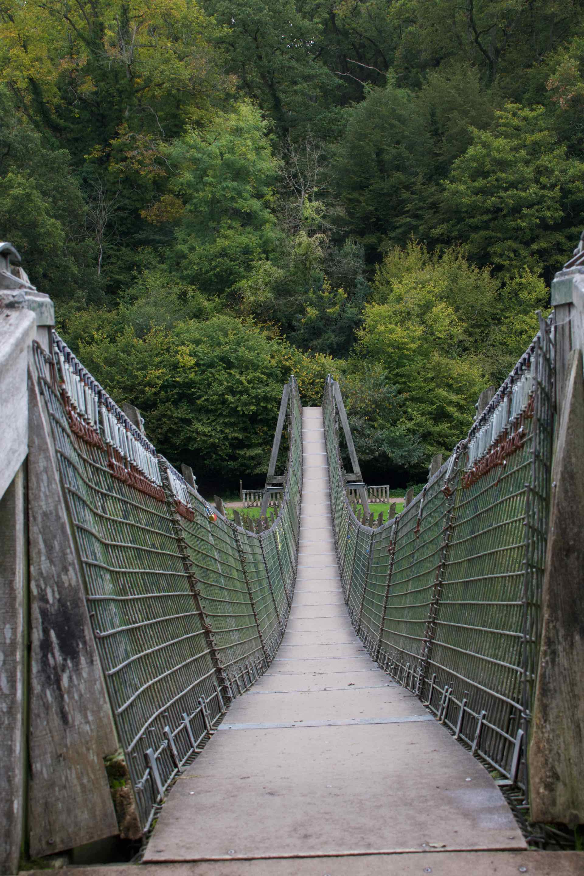 Four images of the rickety footbridge