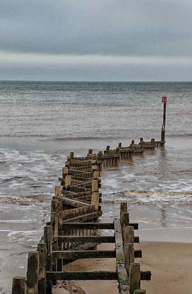 When I got to Overstrand the wind was blowing hard but the water was almost flat calm. Nevertheless I managed to get a few half decent images before the receding tide left the wooden groynes high and dry.