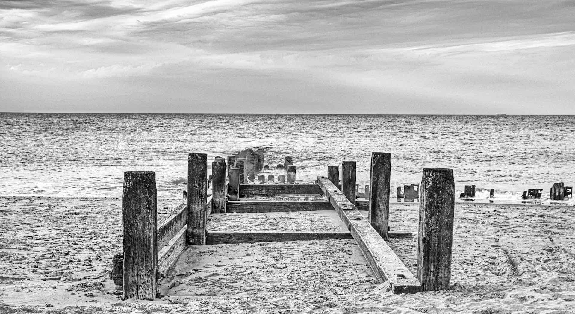 Two versions of the same image, one done in mono, the original in colour. I could not make up my mind which I preferred so I included both of them. Note the onrushing tide.