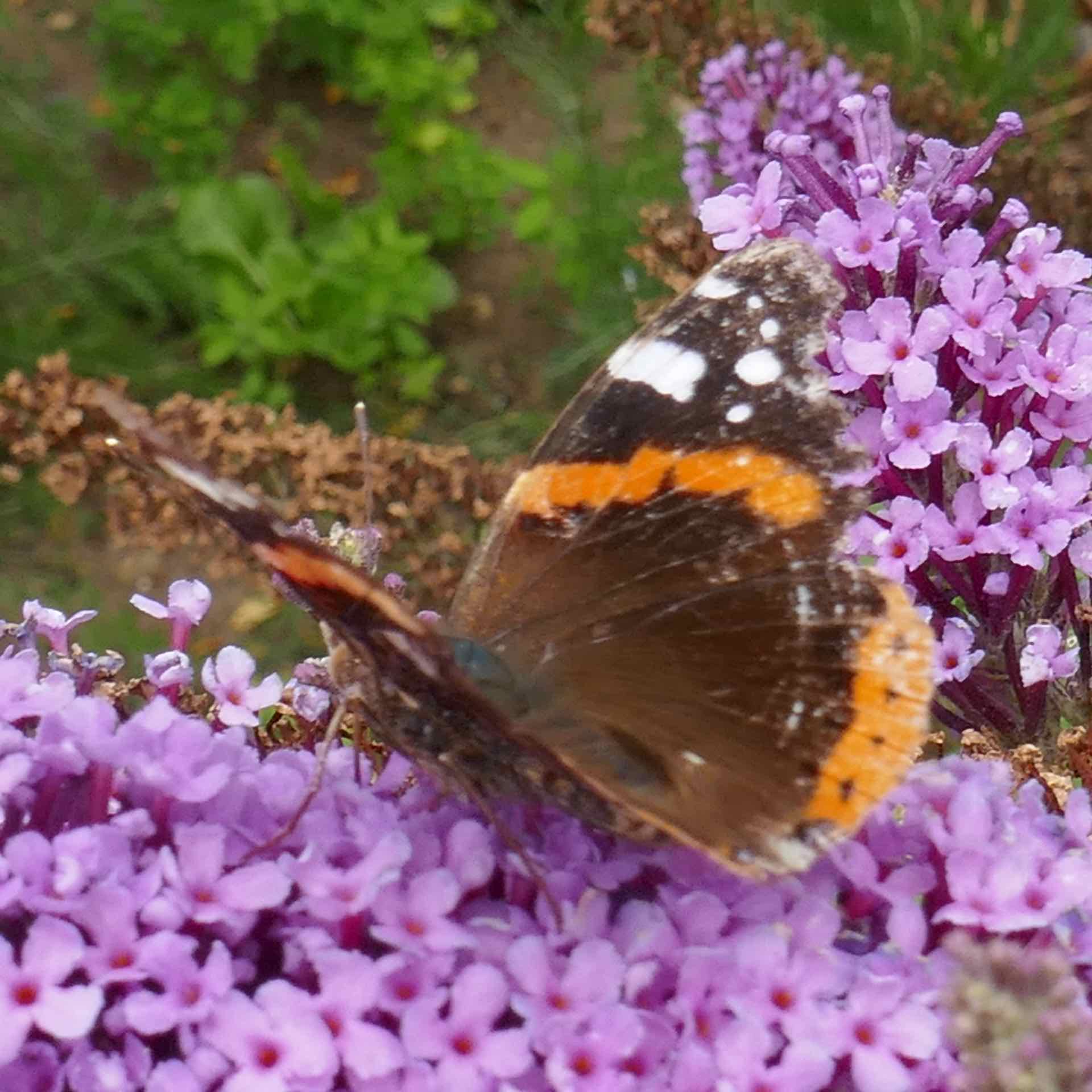 Vistors to our garden – Butterflies – Clockwise from top left: Cabbage White; Comma; Red Admiral; Peacock.