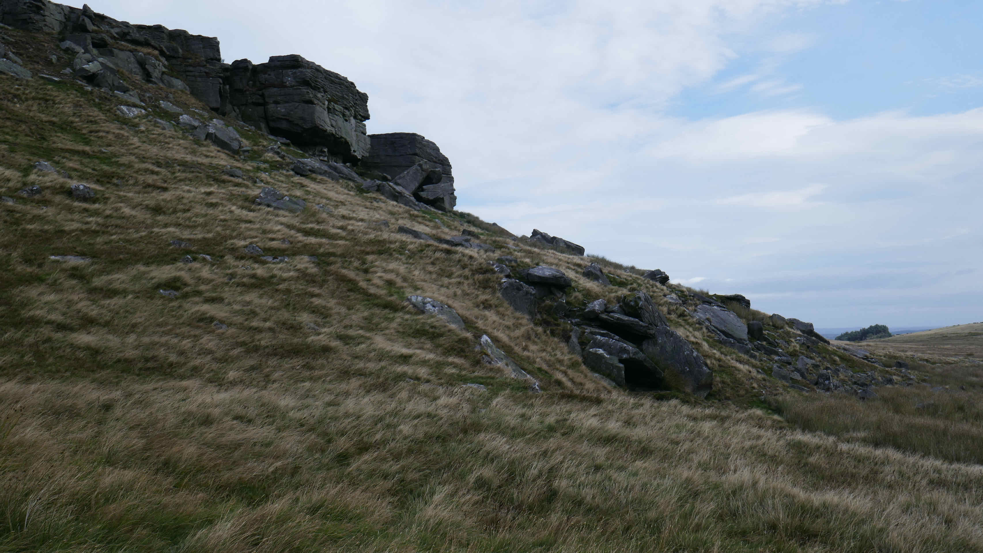 Up until now, the weather has been very kind to us but on Thursday it turned spiteful as we headed out to Bolderhead Reservoir, meeting at the large car park for our next walk. Overnight a cool, blustery wind had picked up and grey, rain laden cloud hung threateningly nearby as we arrived to start our walk. Our route took us across the top of the dam and along a rough field path which followed the contour of a low hill with us slowly climbing. After pausing for coffee close by a very remote farm, we eventually emerged on to a path across the top of the moor. This path gave some wonderful views more typical of the big skies of Norfolk, as the sun punctured the cloud, but it brought little warmth to a biting chilly wind. As we walked across the moor there was little respite.