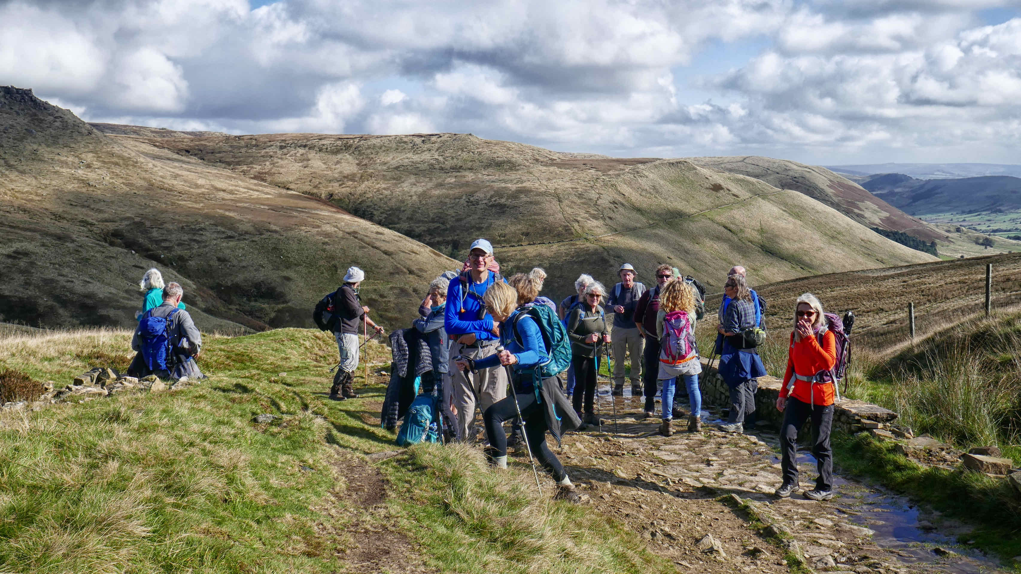 Our walk was more sedate, but taking in three of the Peak Districts most notable landmarks, Jacobs Ladder, Rushop Edge/Lords Seat, and Mam Tor, before returning to Edale. The weather was amazing for the time of year, cool, but with glorious sunshine, and the autumn colours were in full glow. Before the walk started we had the chance to catch up with other members of the group over a coffee from another famous place, the Pennypot Cafe by Edale railway station.