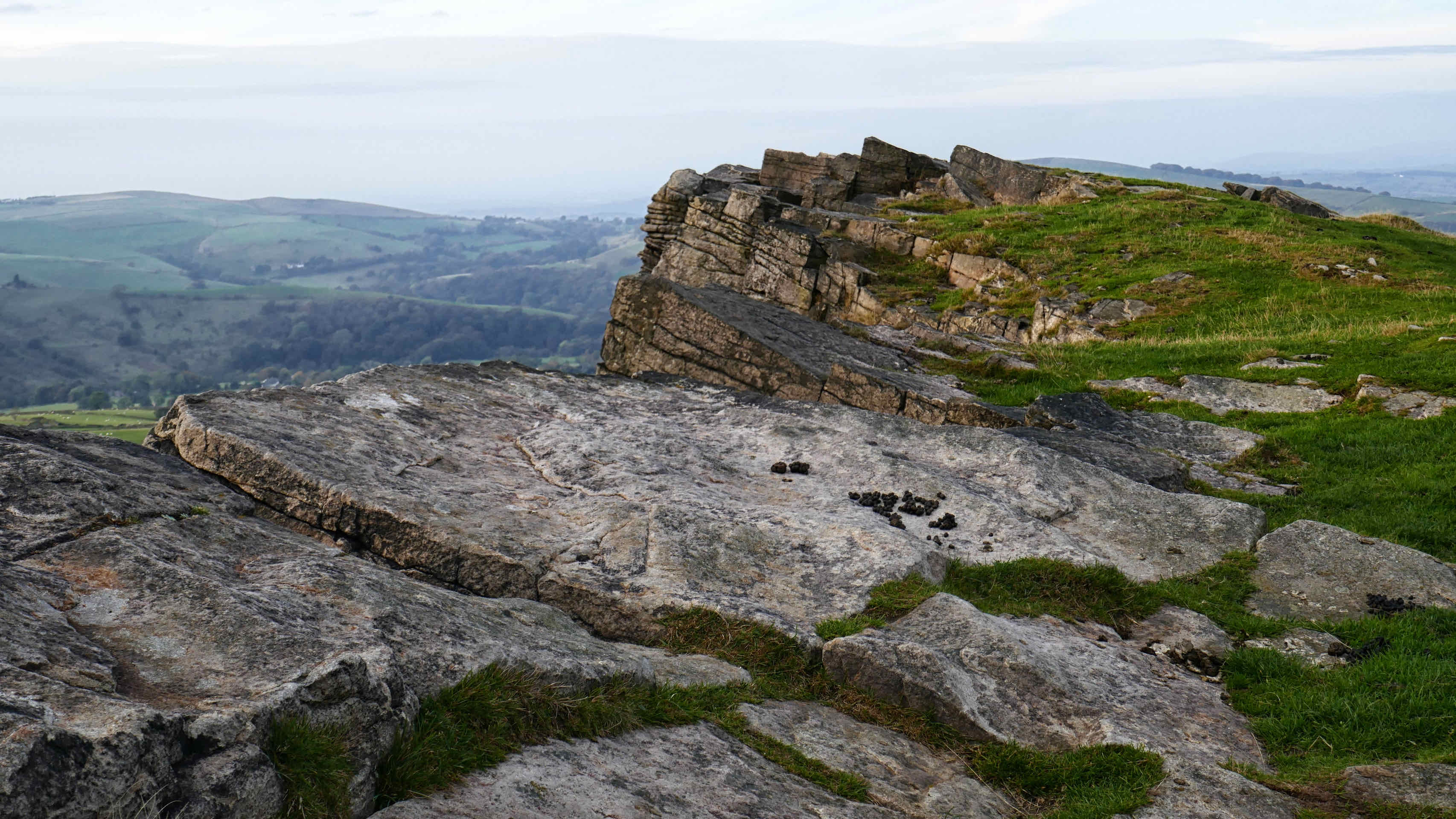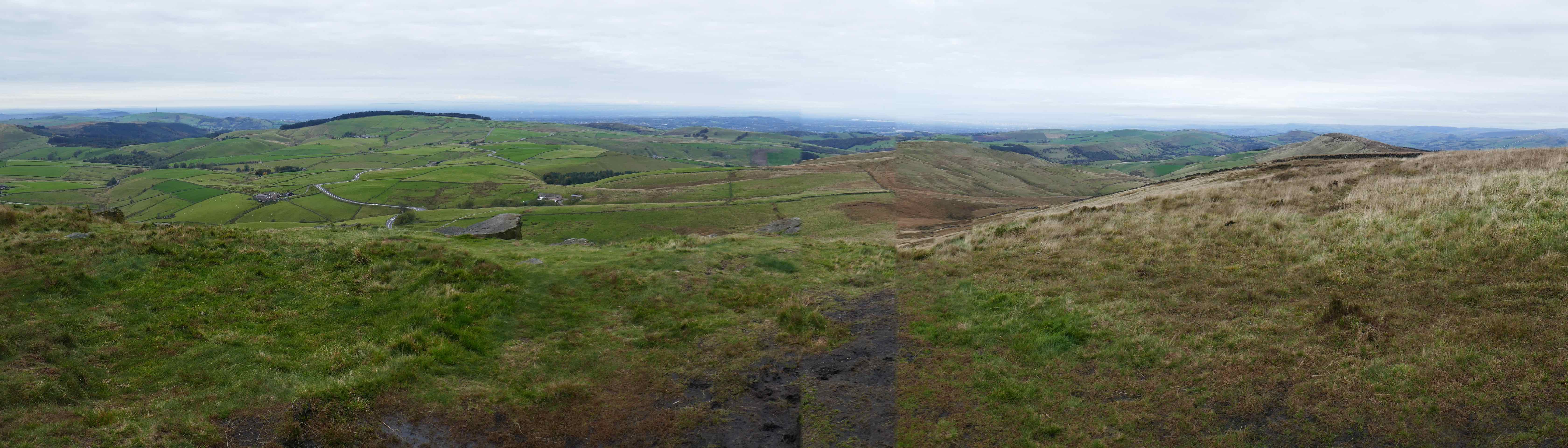 The following day we were up earlier for a 45 minute drive to the start of our next walk, a 14 mile route starting at a place called Pym Chair in the northwest corner of the Peaks. The weather was cool, misty and overcast as we arrived at the remote car park at the end of a narrow lane on top of a hill. Our first waypoint was the Trig Point on top of Shining Tor.
