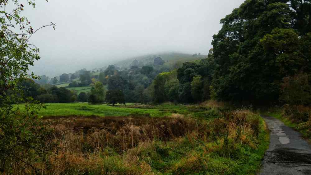 Sunday’s walk was the last long walk with the group, many were heading home on Monday. We had booked a few additional days so we decided to plan our own walk. The weather gods, who had kept us dry over the weekend decided that they had the Monday morning blues and produced a persistent drizzle to accompany us as we headed out to the appropriately named Wetton Mill to start our walk. The mill was blessed with a cafe so we waited there with coffee and cake in the hope that the weather would improve. It did not so we set off anyway! The plan was to follow the disused railway to Hulme End before climbing to the summit of Ecton Hill and Wetton Hill before descending and returning to our start point. As we walked up the trail it became clear that going high would be pointless as the cloud was sat squarely over the top of the hills, rendering the visibility as almost nothing. When we got to Hulme End the Visitors Centre was closed so we sheltered under the eves on a bench and debated what do next. Following the same route back was the favourite, so that is what we did. It was still raining and the hills were completely obscured by clouds.