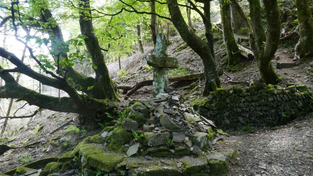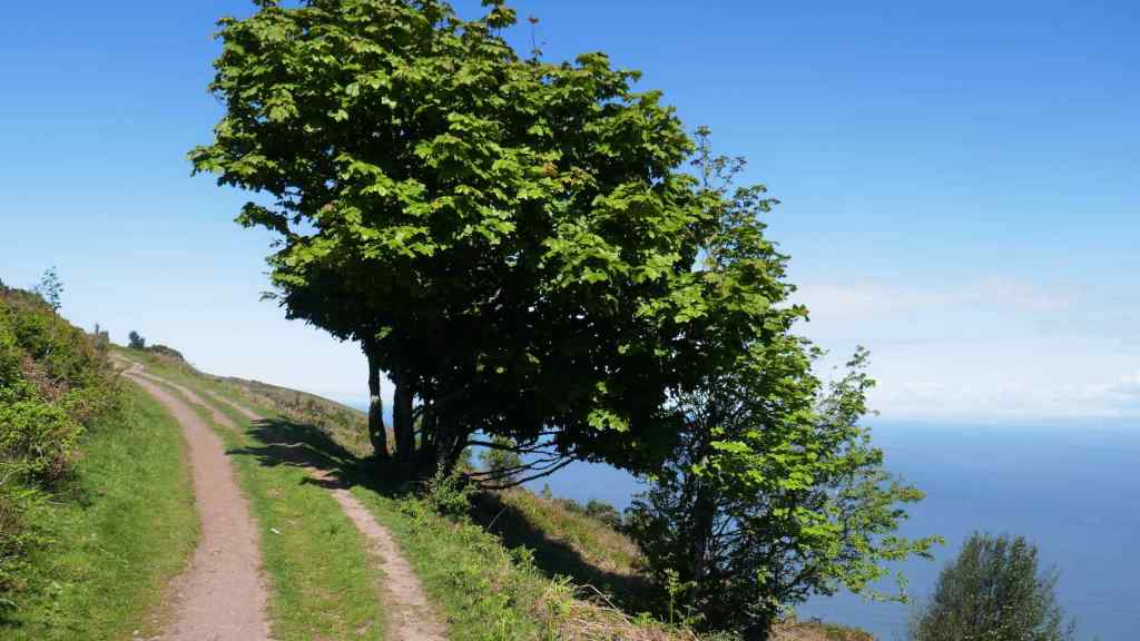 From here, the path started to climb into an extended wooded area which gave us occasional glimpses of the sheer drop off the cliff edge, and views of the coast line and across the Bristol Channel to Wales. The path had been re-routed in several places owing to landslips which added to the distance we had to cover. At one point on the trail we came across a small settlement of three houses and a church hidden in the woods. This was Culbone, home to England’s smallest church, and only accessible via a two mile rough track through the woods. I would like to have stopped to take some pictures but we were running a little late due to the diversions and the steep nature of some of the climbs so we pressed on.