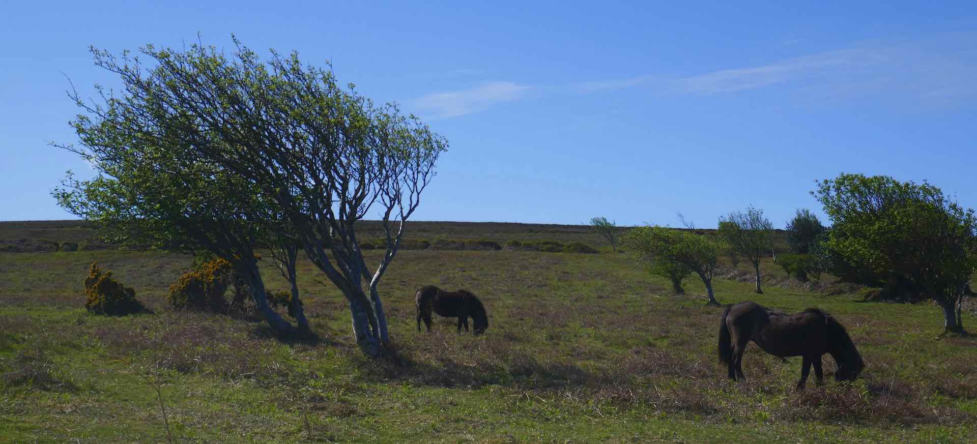 Some of the Local Residents – Wild Exmoor Ponies graze on the cliff side