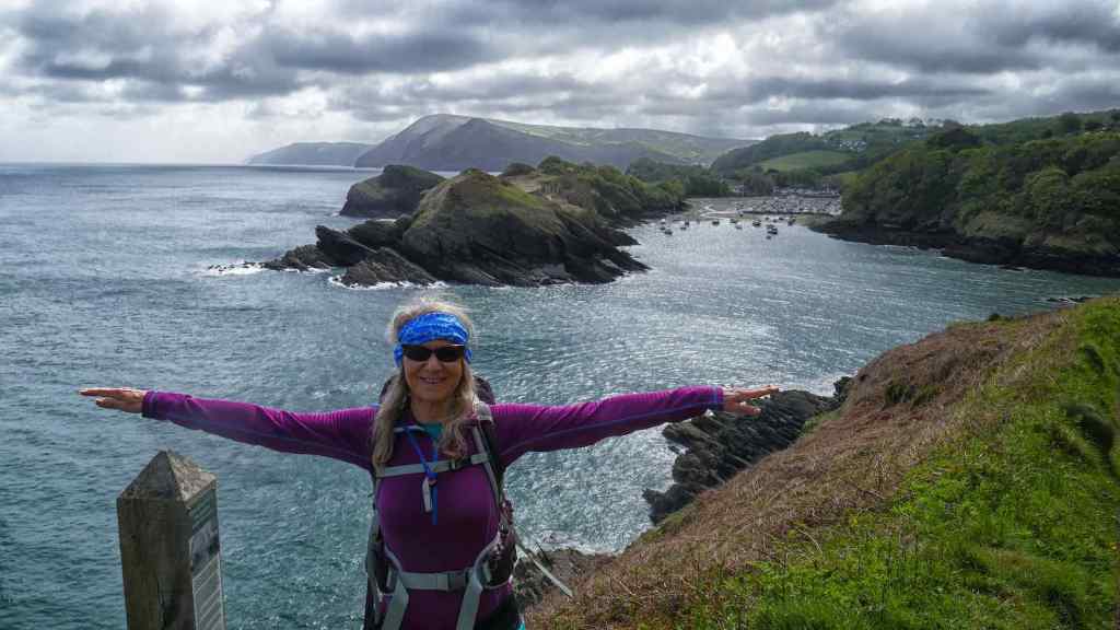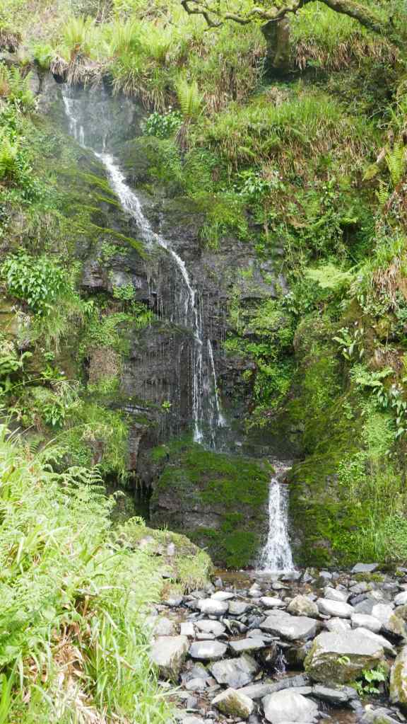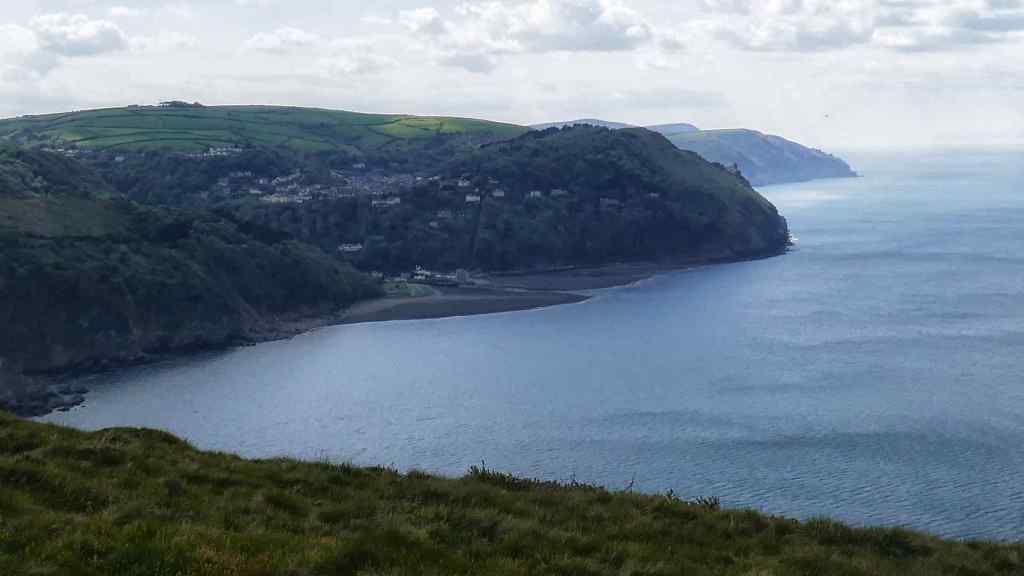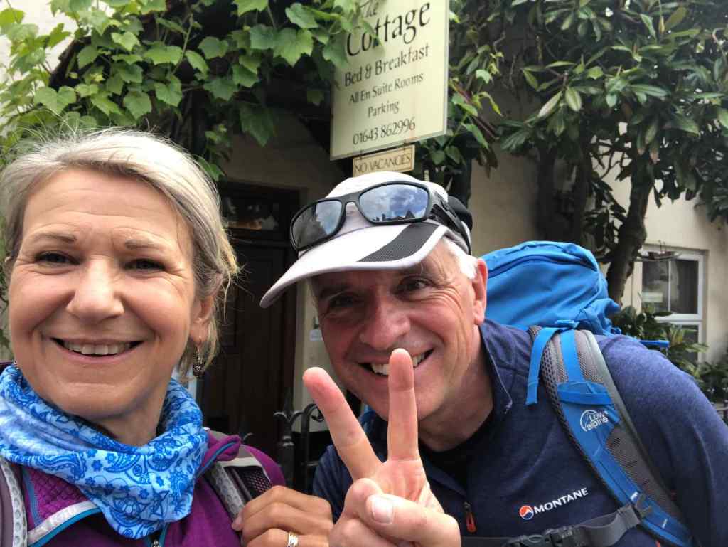 The paths look straight on the map, but on the ground they zigzag up the side of the hill so you end up walking twice as far as indicated on the map! We eventually reached the top of Butter Hill which gave fantastic views along the coast from around 1000ft up. Our descent into Lynmouth, our night stop, was gradual but a route through a woodland path fringed on both sides by beautiful wild garlic flowers was very restorative. Today was a hard leg, having walked about 2.5 miles further than the mapped route had indicated.