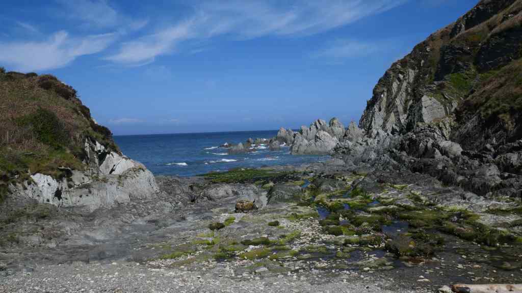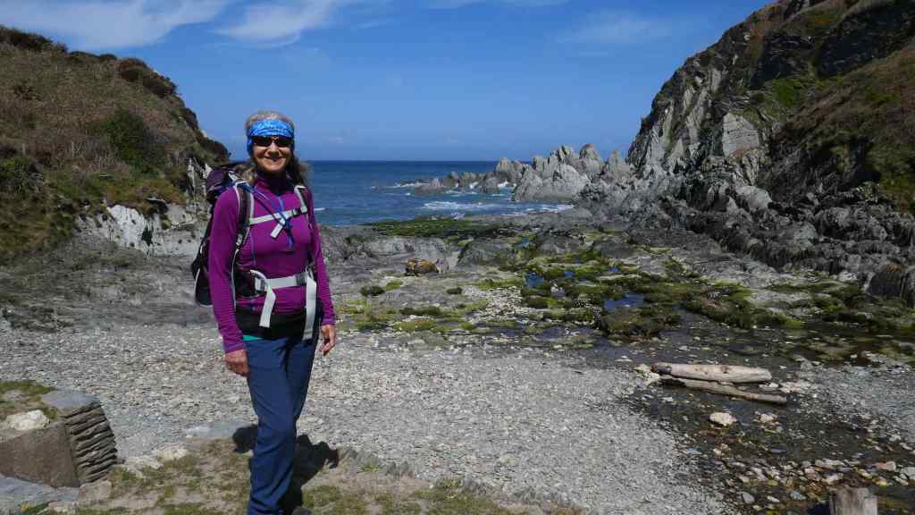 Cliffside paths are inherently unstable and subject to landslips and so it was with today’s route, with a number of diversions which eventually led us to Bull Point, a rocky promontory where there is a lighthouse and spectacular views of the coastline. The path led on to Morte Point and a scramble over the rocks on to a lower path which led us into Woolacombe, the main attraction of which is a very long sandy beach. Over the last couple of days the wind had increased and there was now a choppy sea, ideal for the odd surfer we could see in the distance.