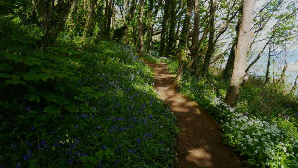 - Woodland Path: 2. Wild Garlic Lines the Path: 3. Bluebells; 4. Sea Campion