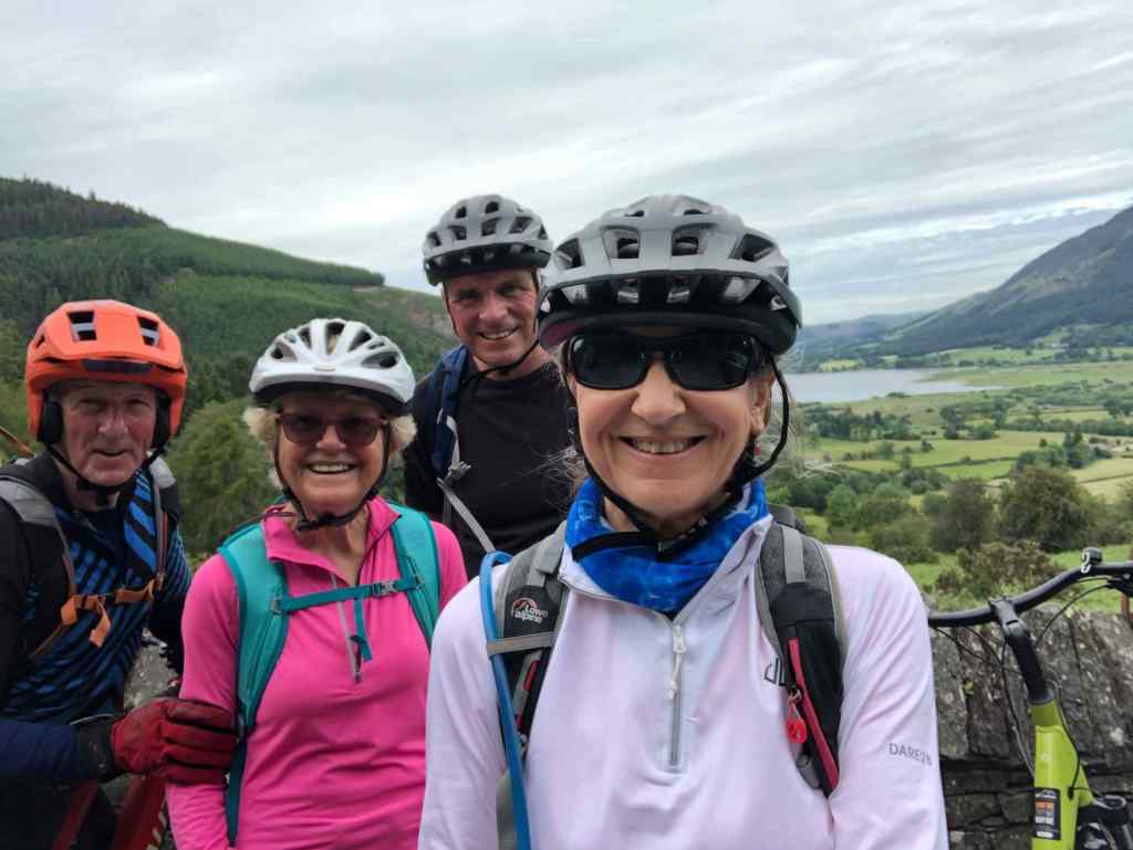 At home, Lyn an I are enthusiastic cyclists and Norfolk, being fairly flat, lends itself to some relaxing routes. Keswick and the Lakes is different, but with the increased availability of E-Bikes to rent, cycling has become a more accessible activity. On a bright sunny day (yes, another one!) we met friends Geoff and June outside a bike shop in Keswick for a bike ride. At home, our non-electric road bikes are light and nimble, well suited to the flatter landscapes of Norfolk. On the other hand, our hired hybrid E-bikes were robust to say the least, They were bulky and heavy, but came with electric power and 4 speed modes which helped us power up the hills. Our friends brought their own bikes which were well suited to the varying terrain of the Lake District trails.