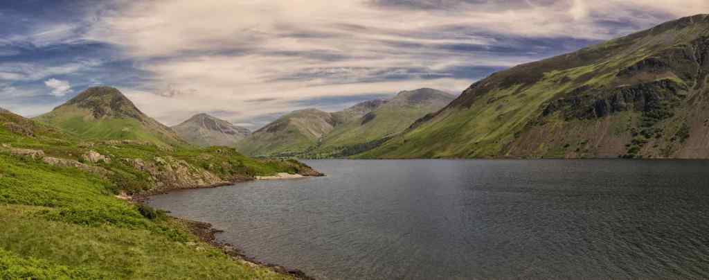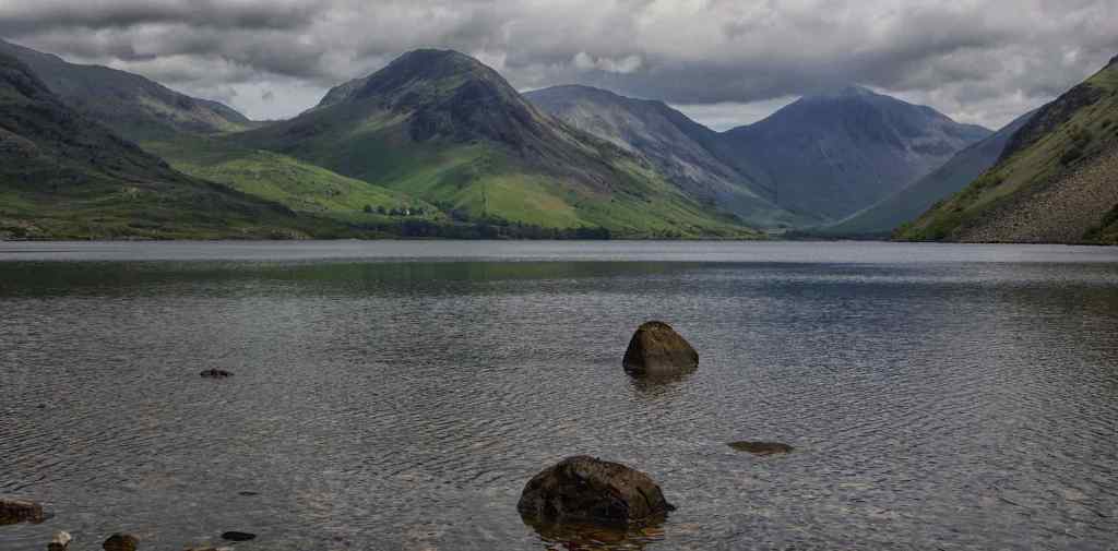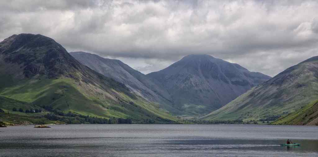 The day started with grey cloud cover and a gentle breeze rippled the surface of the lake. After coffee in Nether Wasdale we headed up the narrow valley road, parked the car and walked the short distance to the southern lake shore. The views were breathtaking. Wasdale is fairly open at its south western end but the lake is surrounded on three sides by steep mountains. Yewbarrow, Kirk Fell, Great Gable, Lingmell, and Sca Fell guard the northern end around the tiny hamlet of Wasdale Head, The steep scree slopes of Illgill Head run the length of the eastern side with Middle Fell, a slightly more gentle slope on the western side.