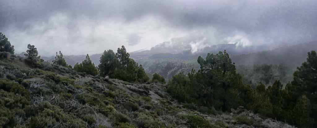 Above: Three images of the view from the summit of Pico Bejenado looking towards Roque de Los Muchachos, the site of the observatories.
