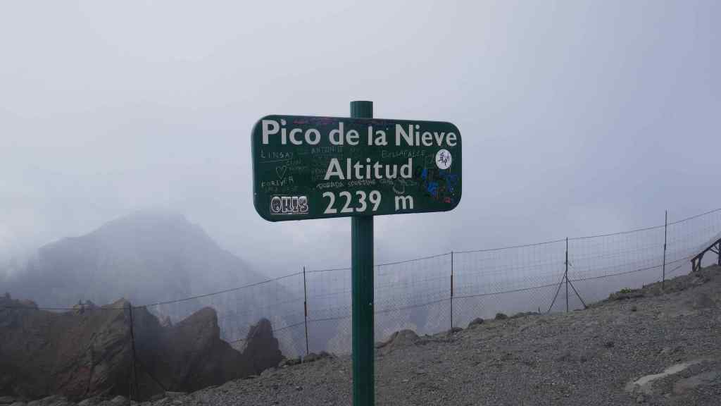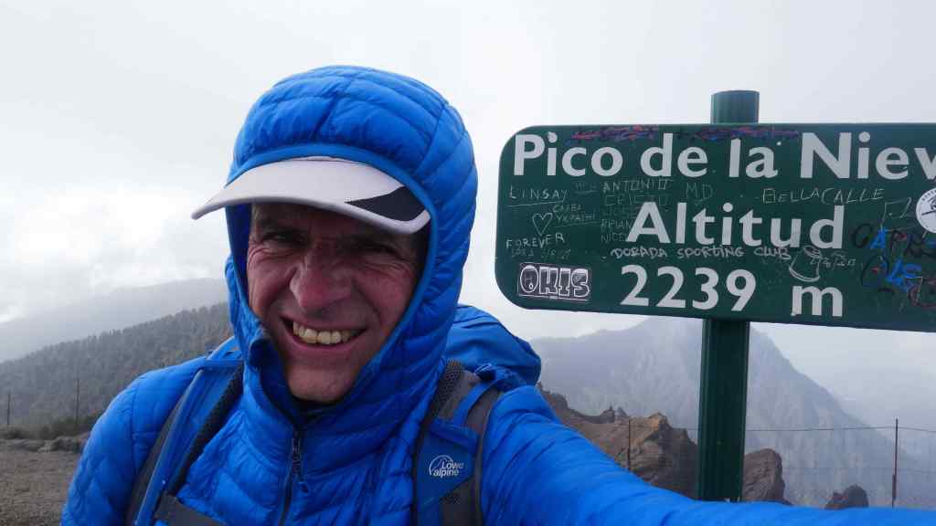 The scenery was stunning but we encountered variable weather as we walked in and out of cloud as can be seen from the following four images from the start and first phase of the walk to Pico de La Nieve. Our route took in 3 summits, Pico de La Niece, Pico de La Cruz and the final walk/drive up to Roque de Los Muchachos.