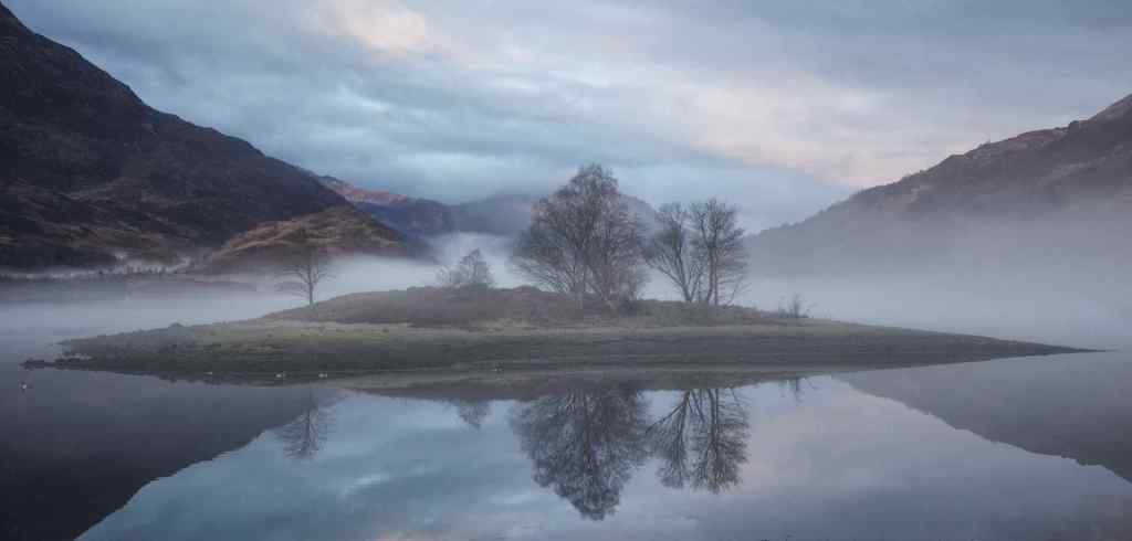 Our next location was the western side of Loch Tulla, which is over an hour’s drive from our base. By the time we reached it the cloud had thinned and the weather was promising. I had visited this location on a previous workshop so was looking for some different shots.