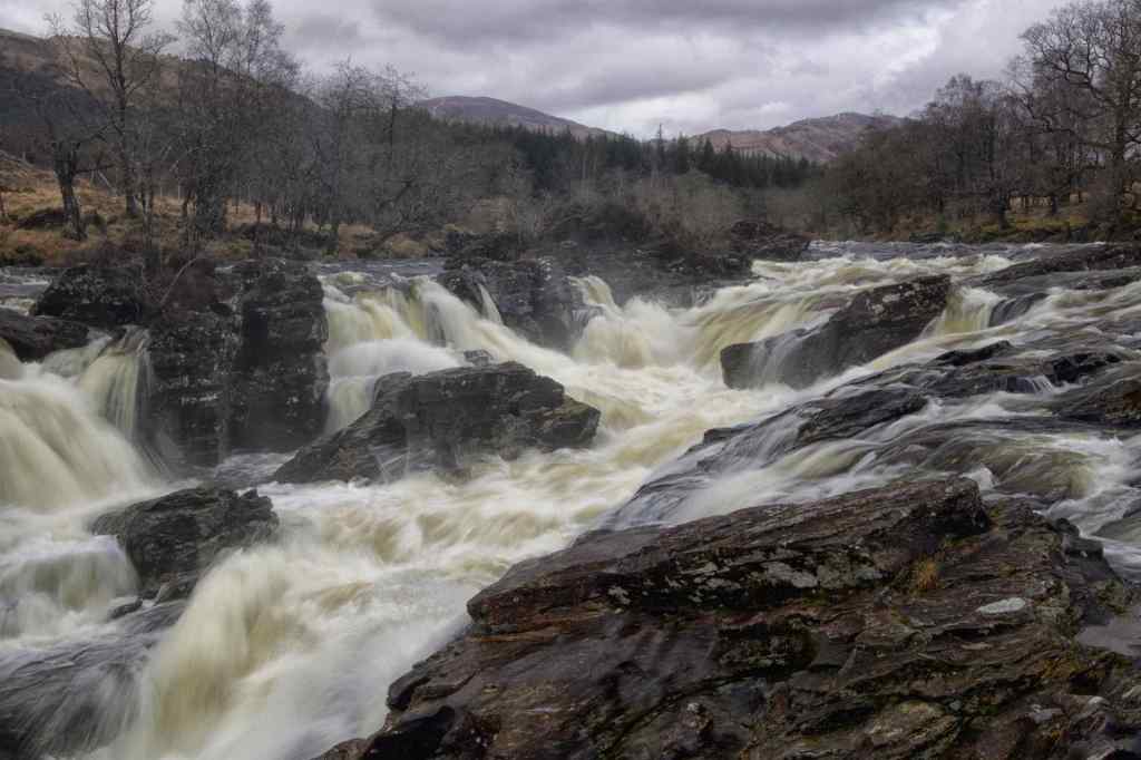 Glen Orchy sits at the southern entrance to the Glencoe region and has a significant, much photographed waterfall. This was the next location. The falls of Glen Orchy (Eas Urchaidh) lie about half way along the narrow road through Glen Orchy and once again provided some great, moody images.