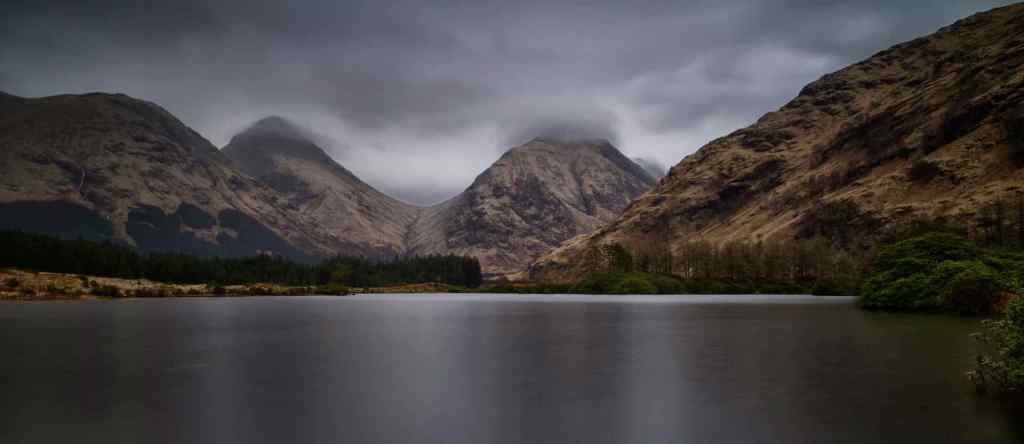Further along the narrow road along Glen Etive lies Lochan Ur. Barely visible from the road, access to the waters edge entails a 10 minute walk down a steep, stony track. The shoreline was all but flooded so I was thankful for my wellies as I ended up standing in about 6 inches of water to take my images. Oh and it was raining again!