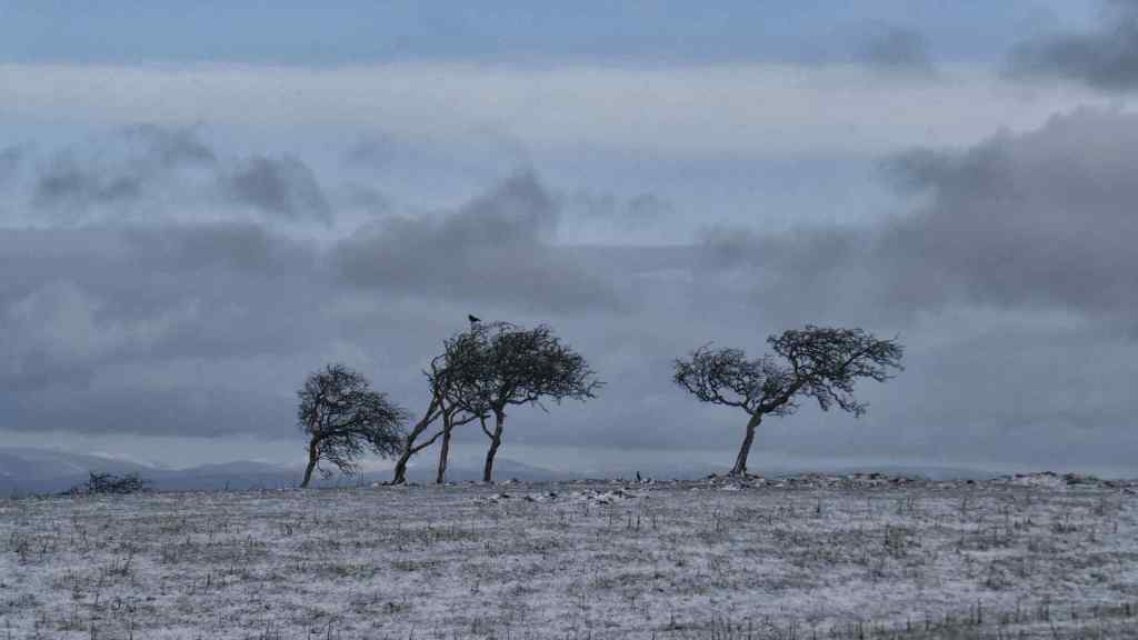 Top: Blue sky as we started….just! Centre: Looking back to the start….here comes the snow! Bottom: The snow sweeps in.