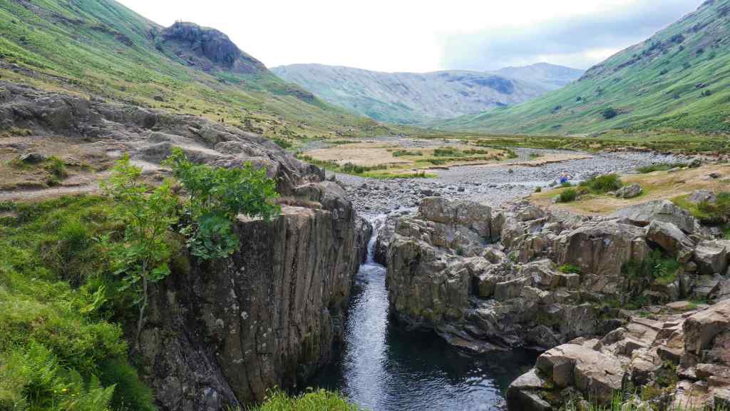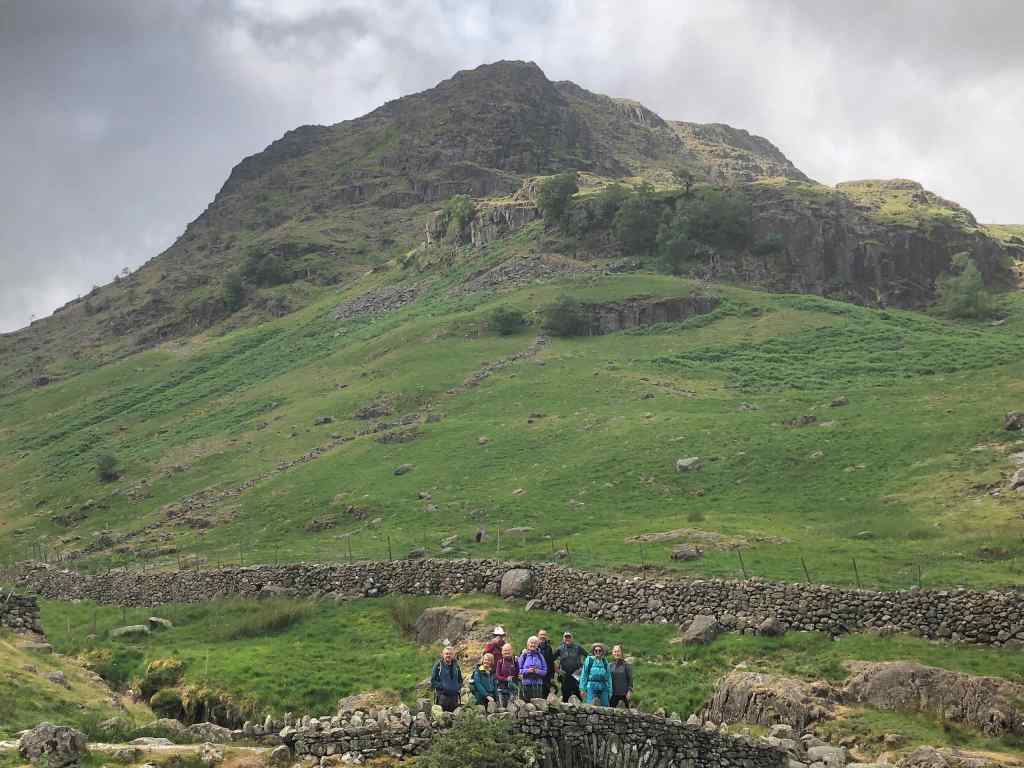 Our first walk as leaders was one we are very familiar with. From Rosthwaite an out and back walk along the Langstrath Valley. The hot weather continued and some of the group requested a lunch stop at Black Moss Pot a deep clear pool, popular with wild swimmers. It was a pleasure to sit on the rocks enjoying the valley, little away from those taking a dip.