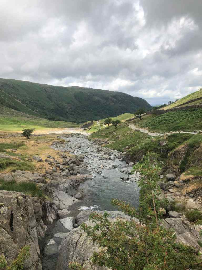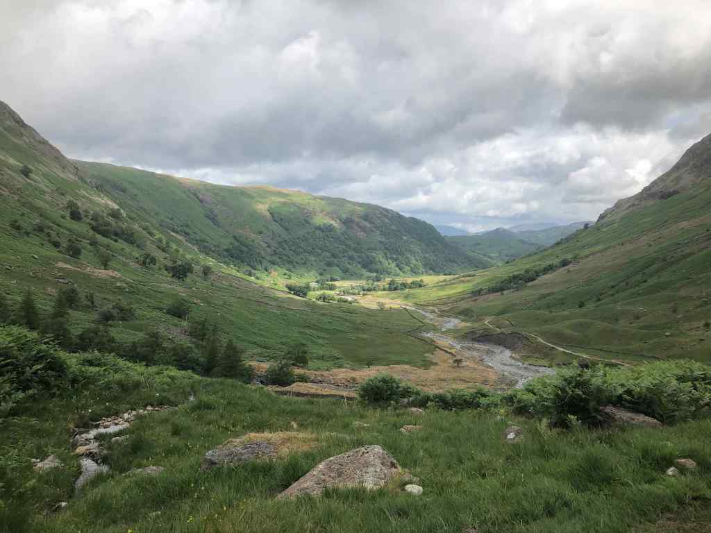 By the time we made the Langstrath Valley the temperature was very high and we had run out of water. We eventually made it back to the start point, but decided that the descent was too difficult for the group so moved to plan B for our first walk.