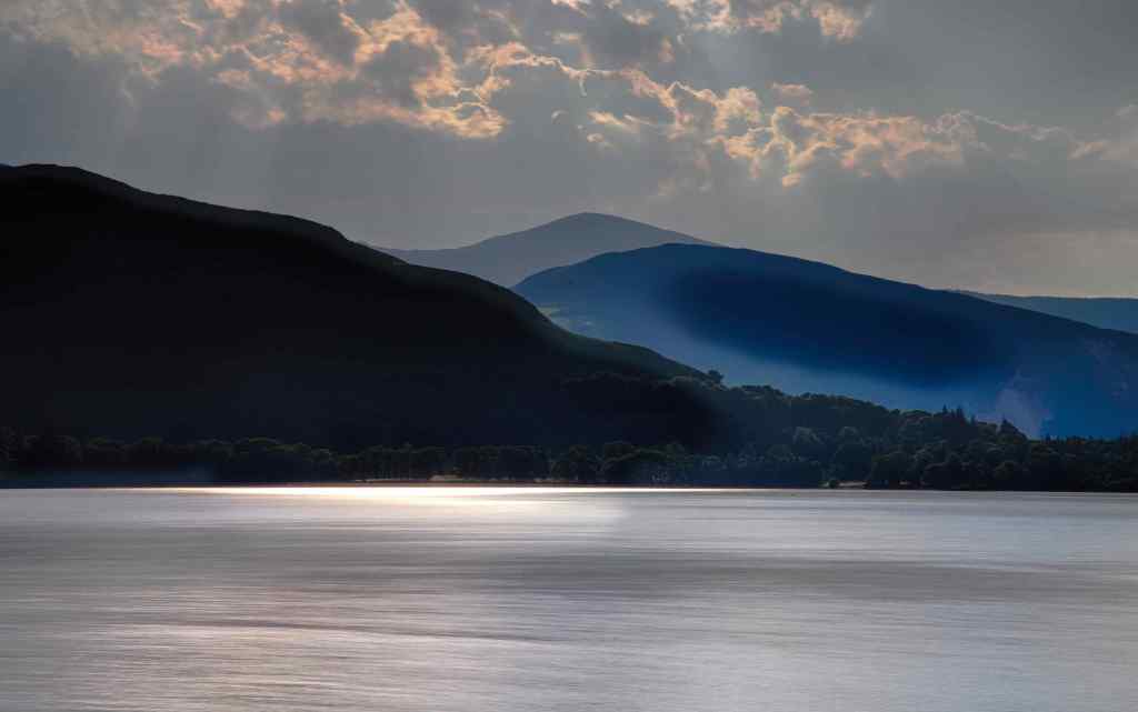 Derwentwater as the sun goes down. Shooting straight into the setting sun poses its own problems but can result in some interesting results.