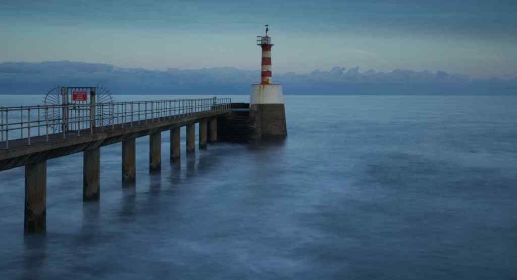 Top: Amble Lighthouse – 10 stop ND filter smooths out an ever increasing swell in the water; Bottom: Same image with mono conversion – takes away the distraction of colour and focuses one tone and atmosphere.