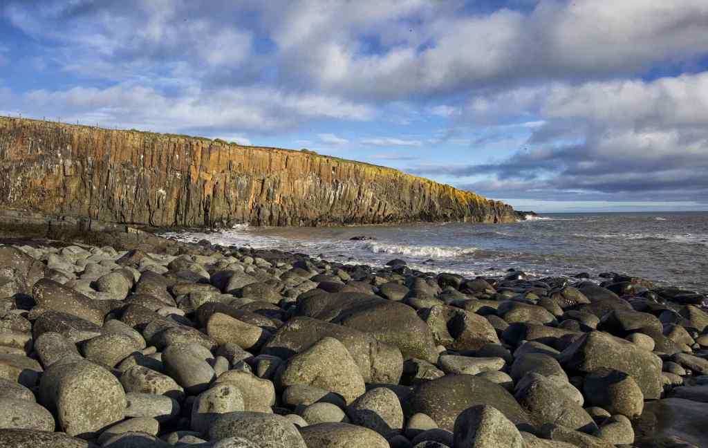 Cullernose Point is large rugged cliff tapering out to sea. Located just south of Coaster it features the classical vertical columns and fractures that characterise rocks that were once molten. The rocky beach was stable and easy to access.