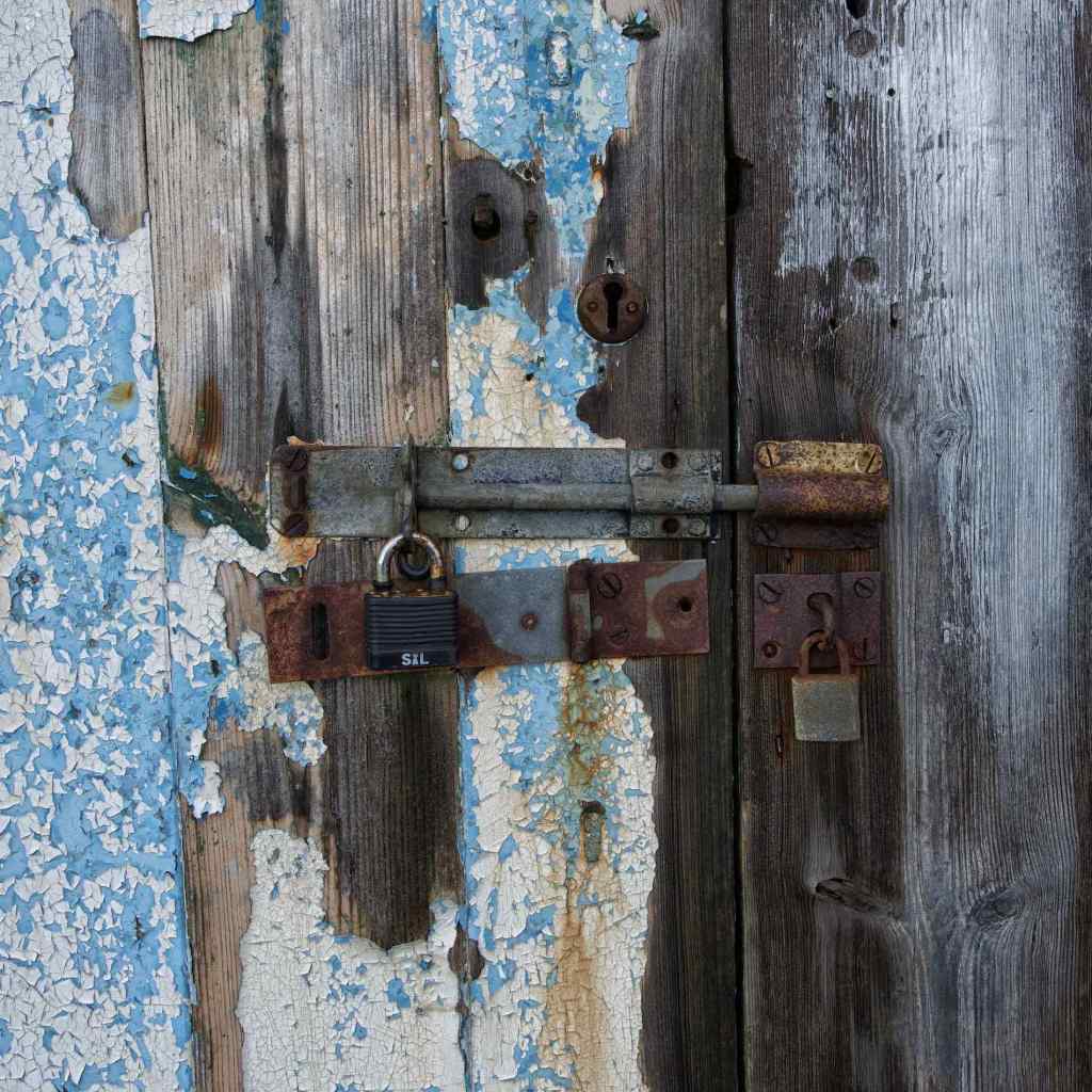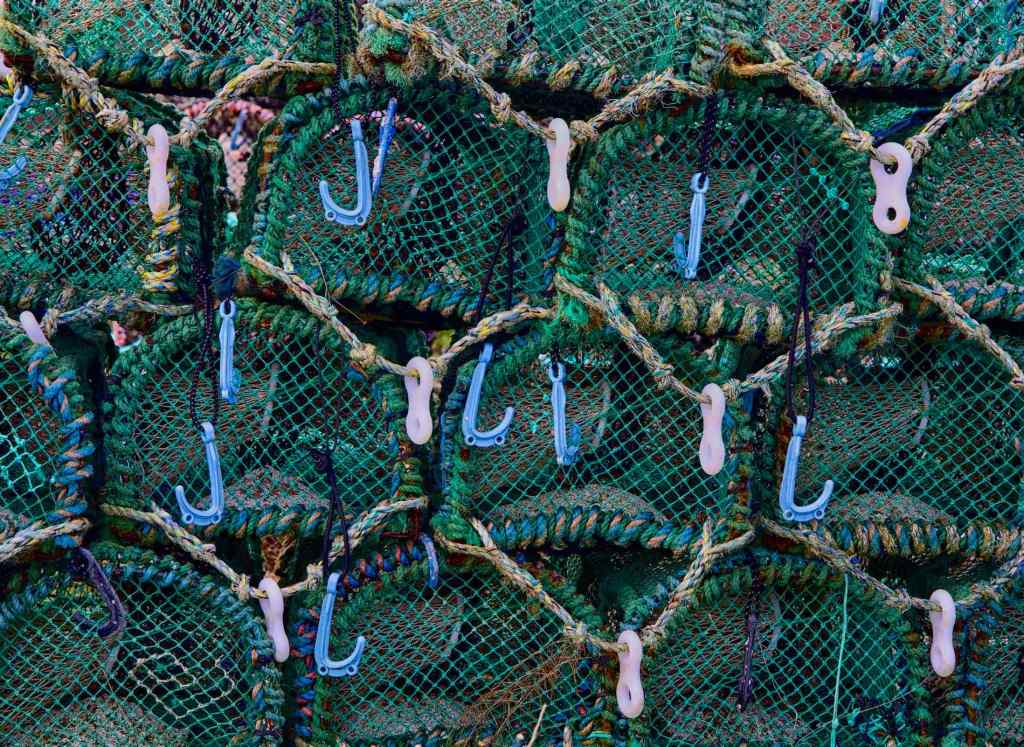 More detail shots – Top: Lobster/crab pots; Centre: Hole in the boat – a rusty hole in the bow of a boat had interest and texture; Bottom: Rusty old padlock – The hasp on this door appeared to be all that was holding it to the shed.
