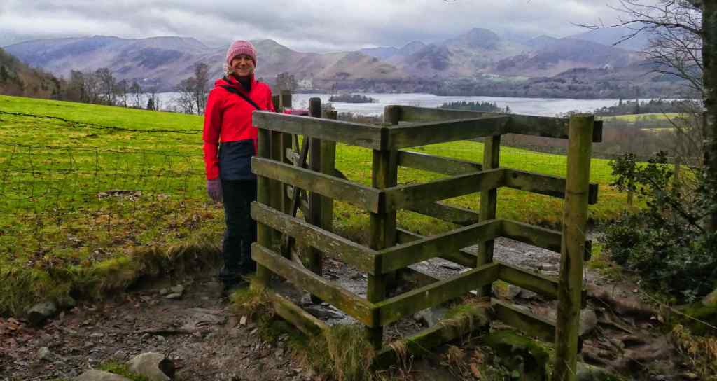 Top: Lyn on top of Walla Crag; Bottom: Lyn pauses on the walk down.